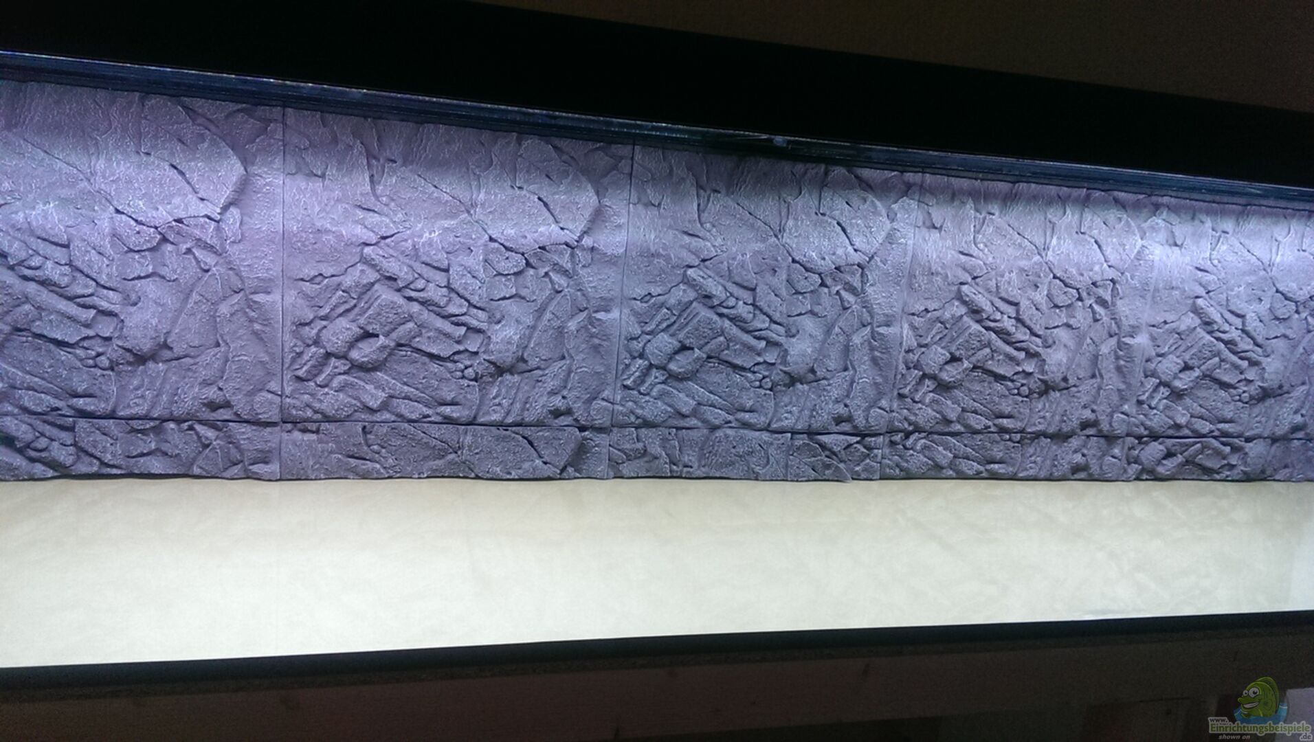 Becken wurde Zuhause geklebt und steht auf einem selbstgebauten Gestell aus KVH in 10cm x 10cm Balkenstärke. Die Juwel Rückwandsegmente sind fest verklebt. Technik wurde von mir nahezu nicht sichtbar installiert.
