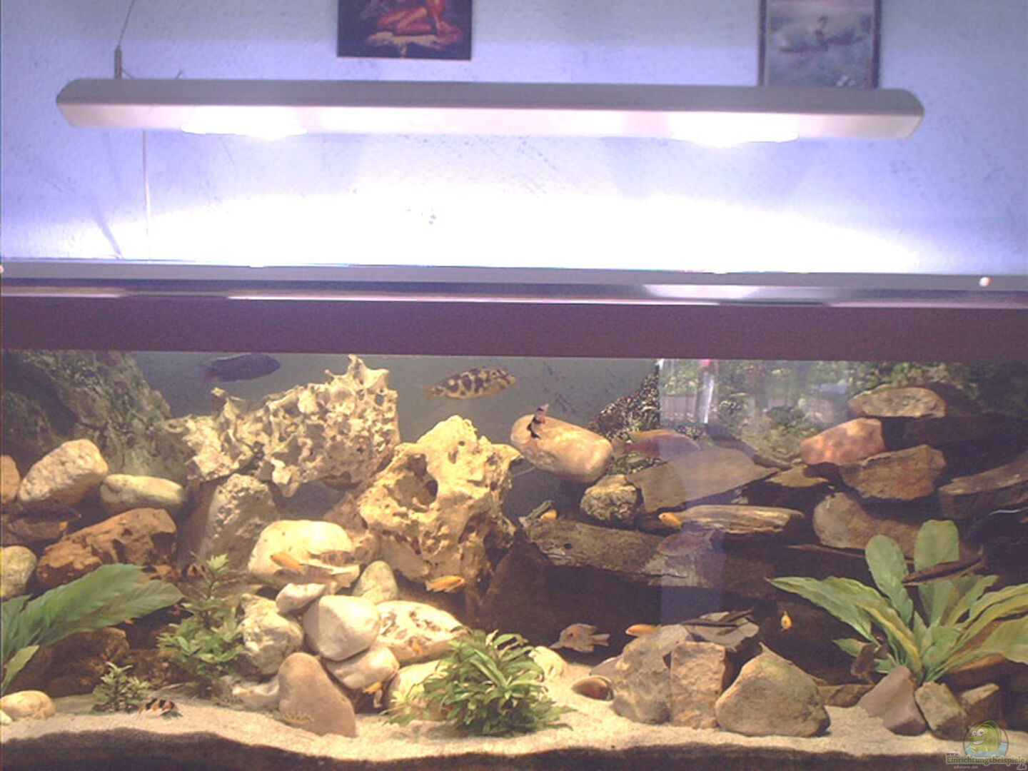 Das Becken steht auf einem Unterschrank Marke Eigenbau 220*60*74 L/B/H Rückwand aus Styropor, Zement und Epoxydharz in 2 Teilen im Becken mit Aquariensilikon eingeklebt