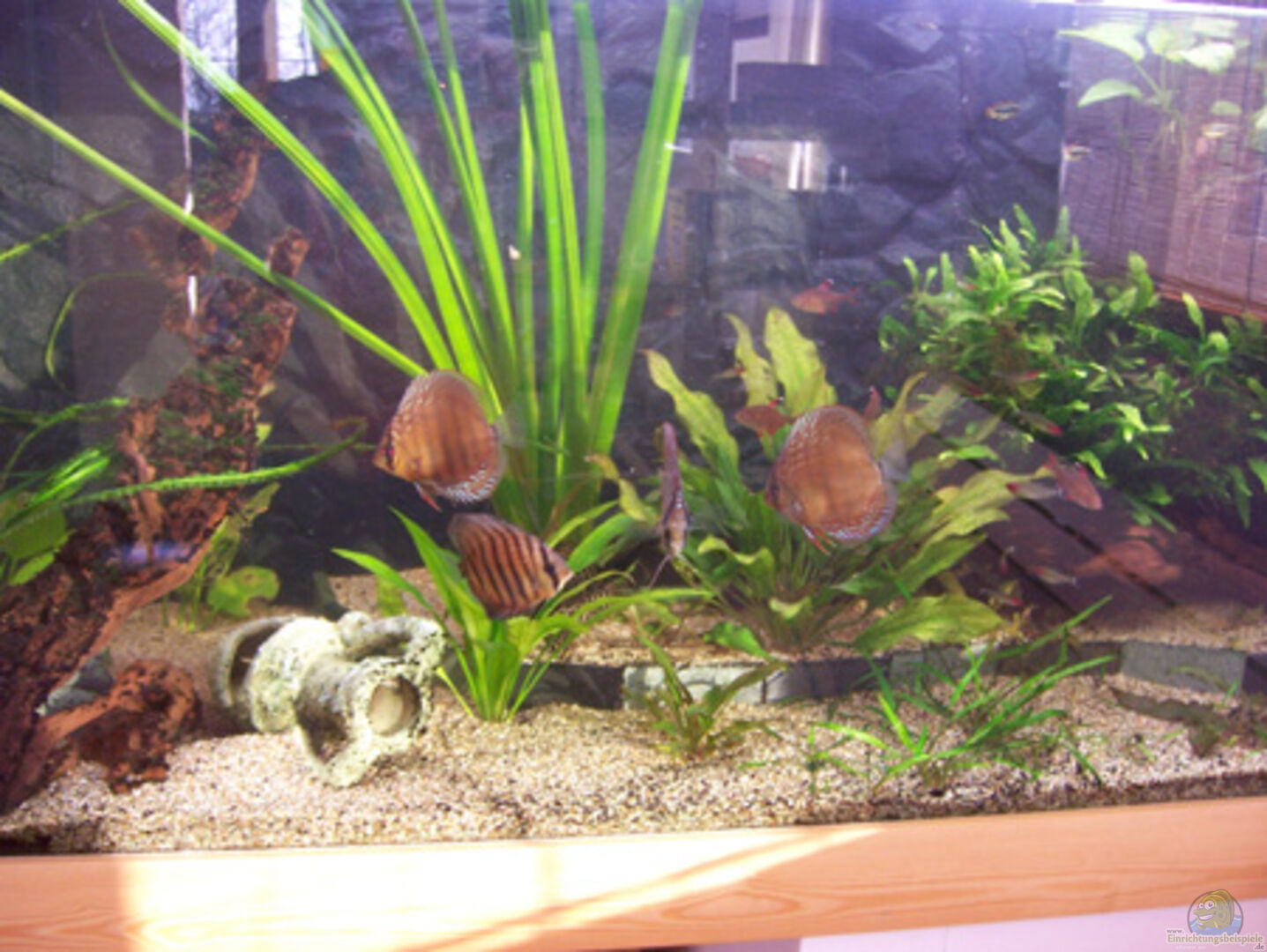 Das Aquarium steht auf einer Eigenbau-Unterkonstruktion, die aus einer Dreischichtplatte und Ytongsteinen besteht. Die abgehängte Lampenabdeckung ist ebenfalls sellbstgebaut sowie die Tür zu der Technik.