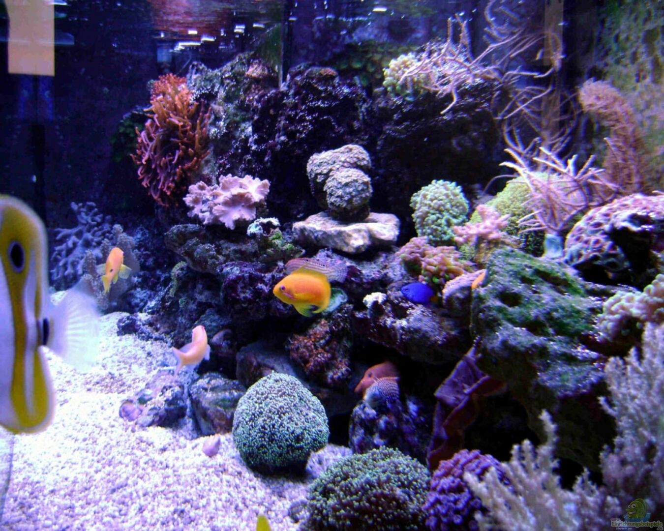 Das Becken hat 10mm Glasstärke und ist Sto?? verklebt. In der Linken Ecke habe ich von einem Aquariumbauer ein Technikbecken 50x50x25 einkleben lassen das mit Algen und 10 Kg Lebendgestein Becken läuft jetzt seit 1.03.2008
