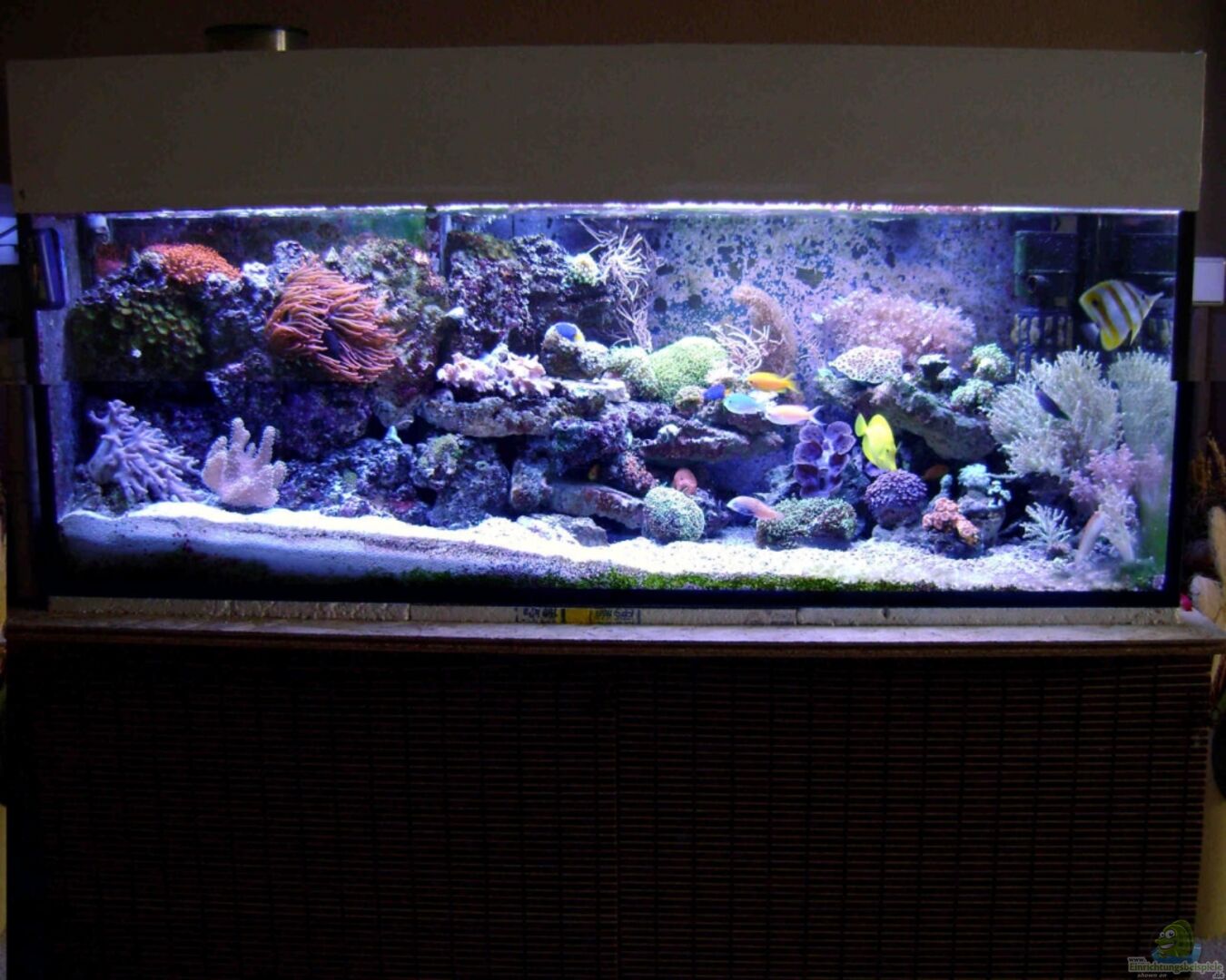 Das Becken hat 10mm Glasstärke und ist Sto?? verklebt. In der Linken Ecke habe ich von einem Aquariumbauer ein Technikbecken 50x50x25 einkleben lassen das mit Algen und 10 Kg Lebendgestein Becken läuft jetzt seit 1.03.2008