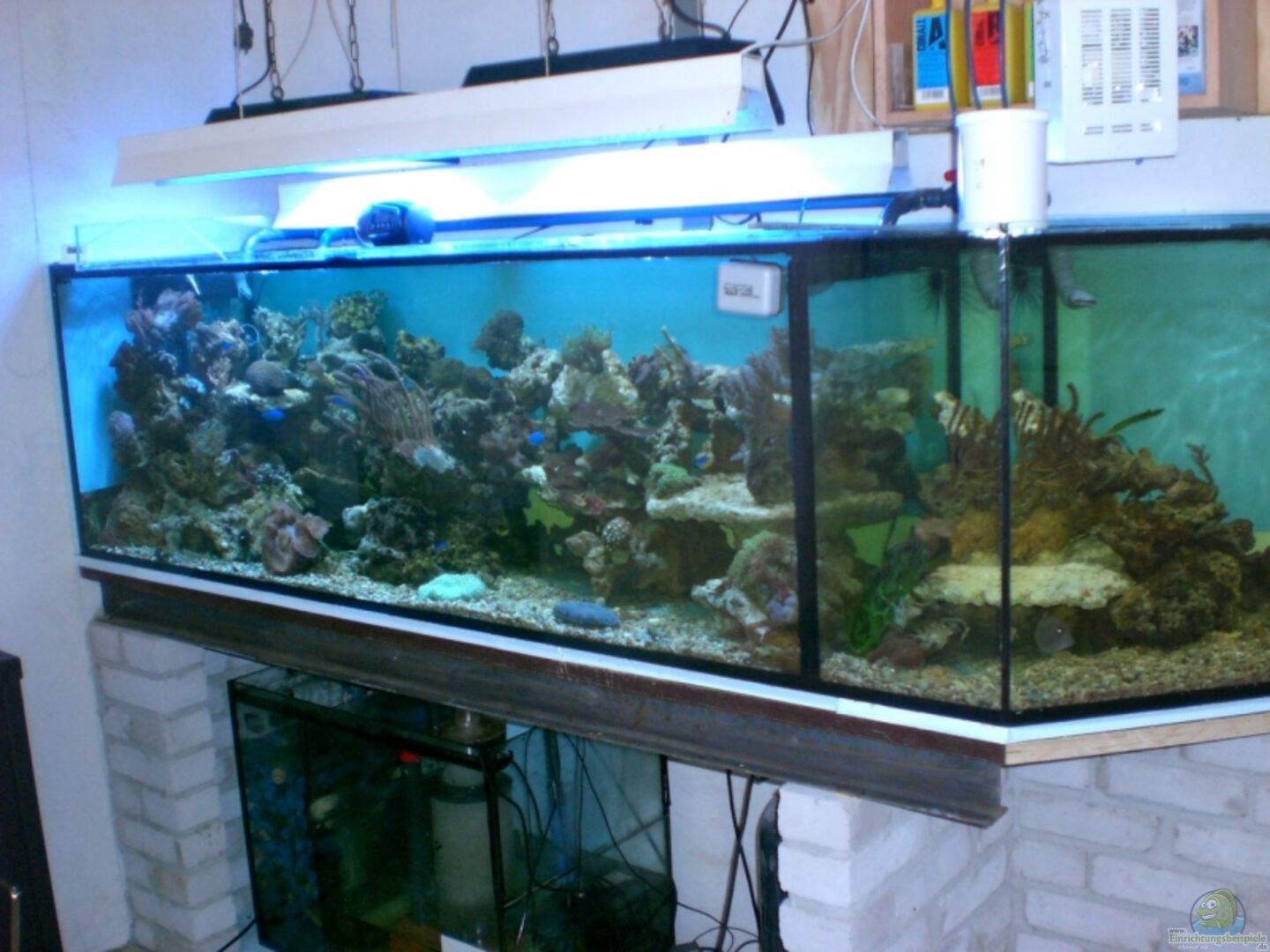 - Es ist fast alles aus meinem alten Becken: Steine, Korallen, Wasser usw und zusätzlich ca. 350 Liter frisches Salzwasser welches aber auch ca. 6 Wochen alt war. Hätte ich nicht gedacht. Aber den Tieren geht es gut. Fische mobil und Korallen auf. Alles bestens :-)))) - Becken ist selbst geklebt mit 12mm Glas, - 2 Löcher sind selbst gebohrt für Ablauf ins Filterbecken für 50-er Rohr
