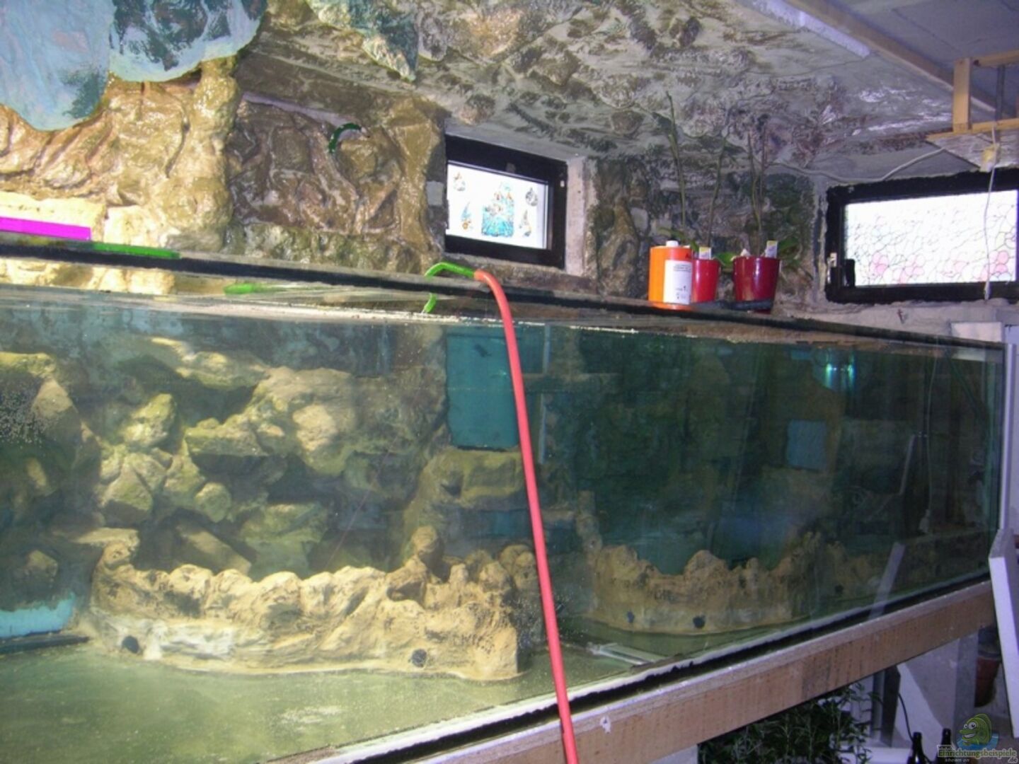 Durchlaufaquarium mit Ablauf ins grosse Becken. Gebraucht gekauft, mit Freunden vom fischliforum abgebaut. Das Kellerfenster (wieder mal) rausgestemmt, in den Keller geschafft und dann mit Ruhe wieder aufgebaut. Die Frontscheibe wurde erst nach fertigstellung der Rückwand und Deckendekoration eingeklebt. Glasstärke 2x12mm VSG, Alle Klebefugen wurden zusätzlich mit 15mm 7cm breiten Glasstreifen verstärkt sodass sich eine 4cm Silikonnakt ergibt, das reine Glasgewicht ist ca 1000kg. Unterbau [...]