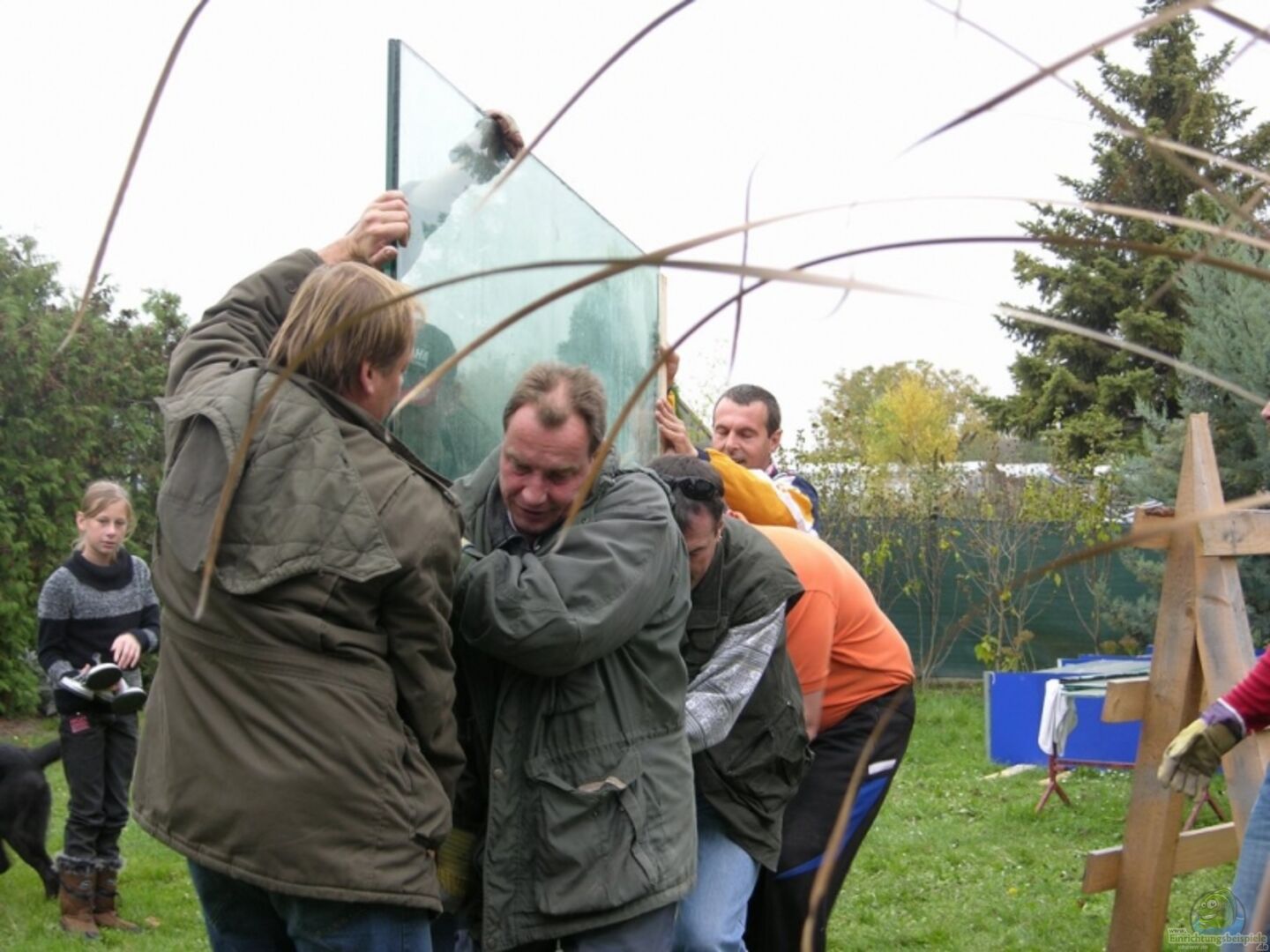 Durchlaufaquarium mit Ablauf ins grosse Becken. Gebraucht gekauft, mit Freunden vom fischliforum abgebaut. Das Kellerfenster (wieder mal) rausgestemmt, in den Keller geschafft und dann mit Ruhe wieder aufgebaut. Die Frontscheibe wurde erst nach fertigstellung der Rückwand und Deckendekoration eingeklebt. Glasstärke 2x12mm VSG, Alle Klebefugen wurden zusätzlich mit 15mm 7cm breiten Glasstreifen verstärkt sodass sich eine 4cm Silikonnakt ergibt, das reine Glasgewicht ist ca 1000kg. Unterbau [...]