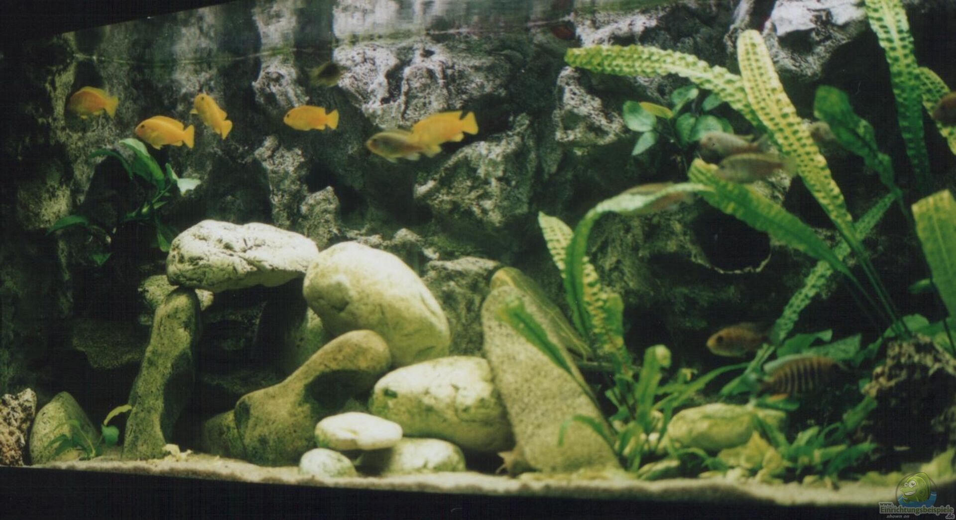 Rückwand Marke Eigenbau: hinten und links im Becken. teilweise 12 cm stark, mit vilene Höhlen, Röhren und Verstecken
