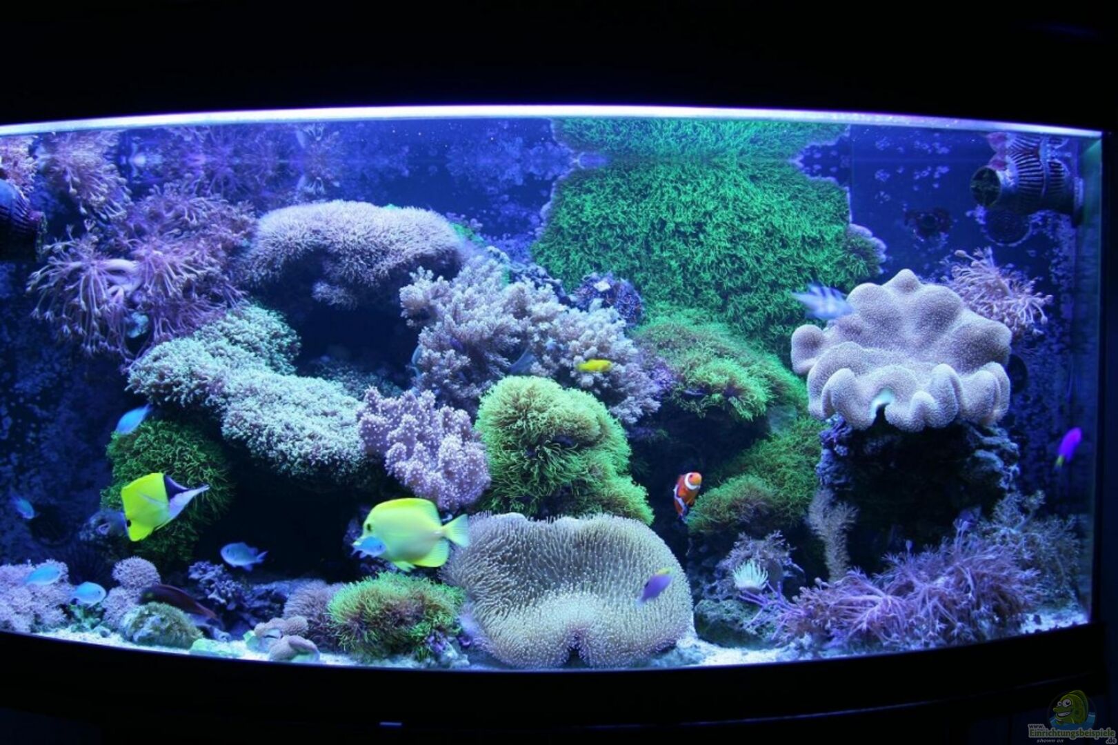 Aqua Medic Percula 120 mit gewölbter Frontscheibe und integriertem Filter.