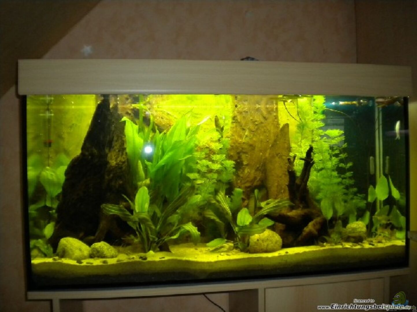 -Selbstgebaute Ruckwand: Als erstes habe ich alles aus Styropor ausgeschnitten und dann mit Gips verkleistert. Danach hab ich sie mit normaler Wandfarbe angemalt und mit 4 Lagen Epoxidharz versiegelt. Zum Schluss wurde sie mit Aquariensilikon eingeklebt. -Hamburger Mattenfilter Als erstes habe ich die beiden langen Glasstreifen eingeklebt und zum Schluss noch unten auf dem Boden fünf kleine Stückchen eingeklebt, damit kein Sand in den Filter läuft wenn man die Matte rausnimmt.