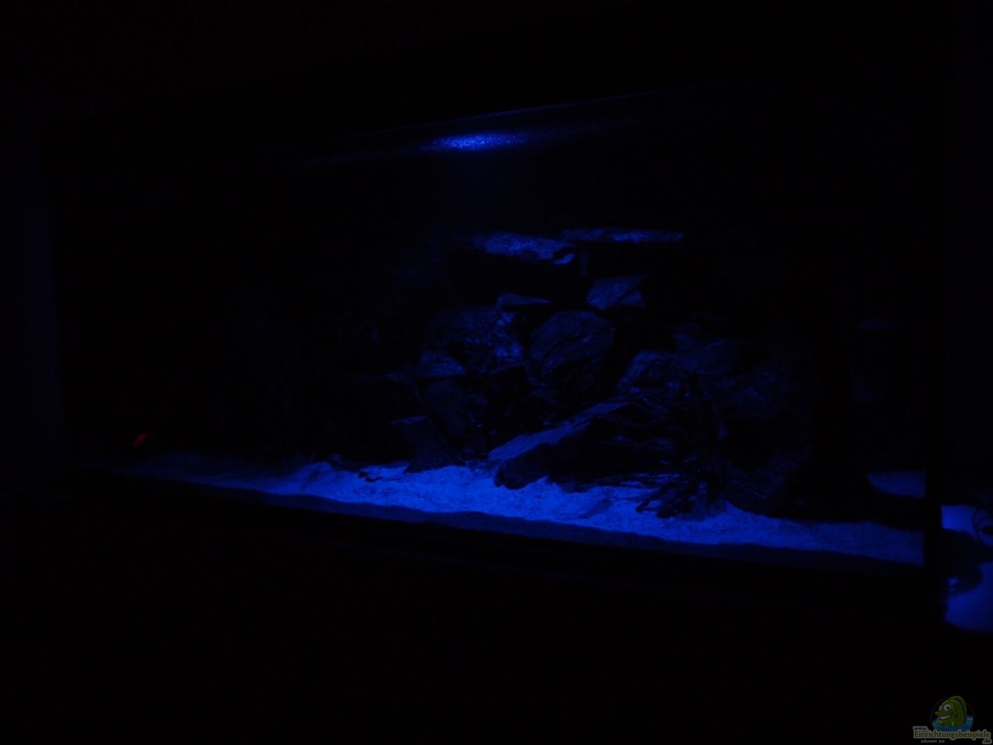 Das Aquarium steht auf einer 2cm dicken Styroporplatte um Unebenheiten auszugleichen. Die Abdeckung ist von Juwel (Rio 300) in schwarz.