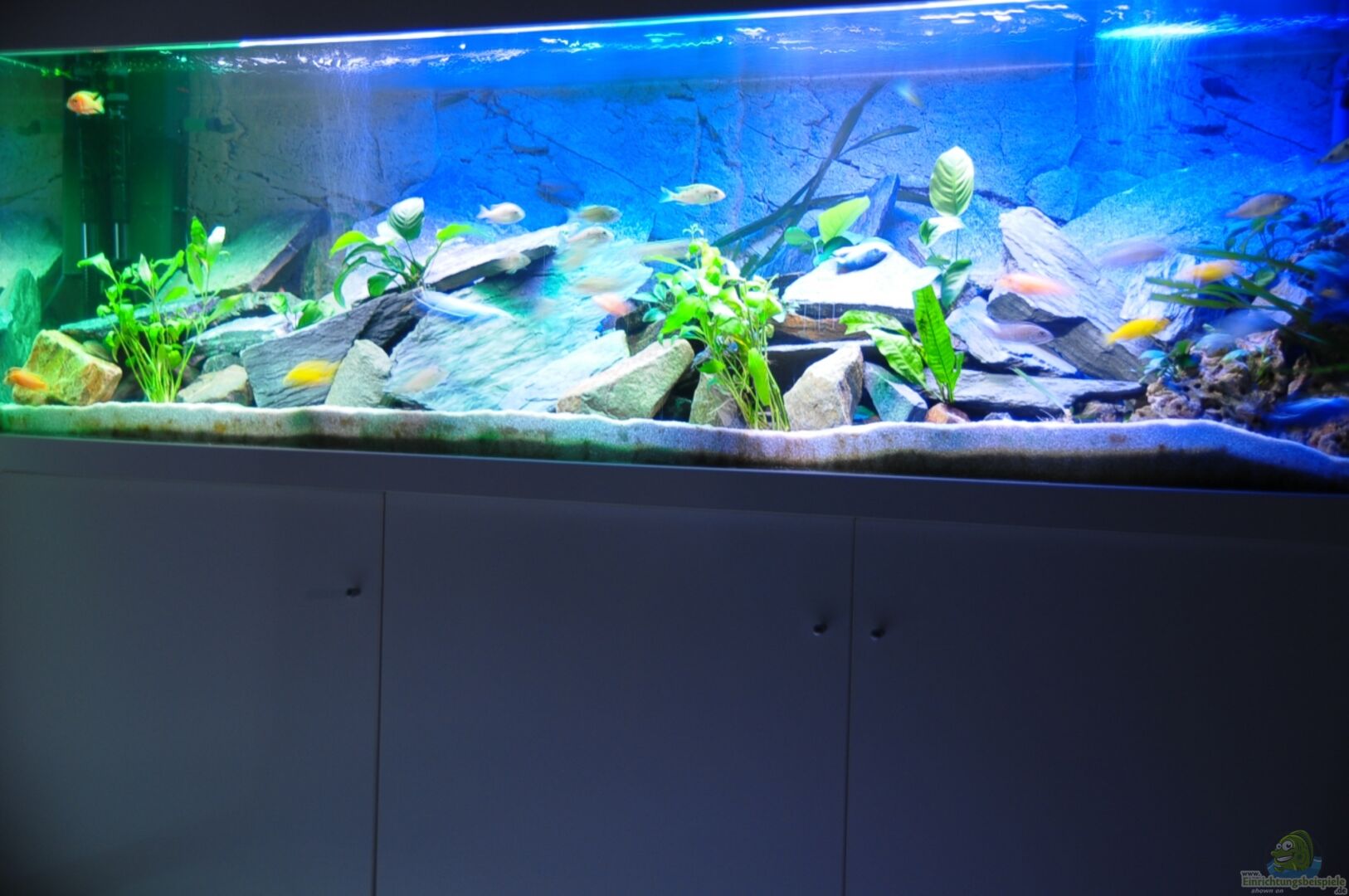 Beleuchtung : 2 T8 Röhren, die vordere Röhre ist eine Aqua-Glo der Firma Hagen.Die hintere Röhre ebenfalls.Beide Röhren sind mit Alufolie abgedunkelt und zum Teil mit blauer und grüner Folie umwickelt.Beide Röhren haben 36 watt. Aquarium: 12mm Sicherheitsverglasung sowie Verklebung. Bodenbereich 2 Bohrungen für Pumpensystem. Bodenplatte habe ich eine 20mm Styrodurplatte eingelegt für den Steinaufbau Da wir gerade ein Haus gekauft haben, wollten wir es dem Wohnzimmer anpassen. Wei?? [...]