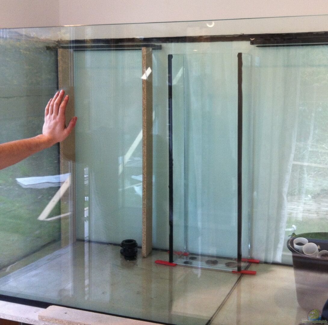 -Die Rückwand wieder von Steinzeit Design. -Breiter ??berlaufschacht mit Kamm und Anschlüssen für Wasserwechsel. -19mm Glas -Glas Abdeckscheiben. -Unterschrank Alugestell von Marine Systems mit Mittelstützen und Scheerwänden, 2 Unterteilungen und Schiebetürensystem.