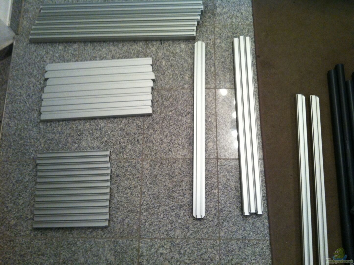 -Die Rückwand wieder von Steinzeit Design. -Breiter ??berlaufschacht mit Kamm und Anschlüssen für Wasserwechsel. -19mm Glas -Glas Abdeckscheiben. -Unterschrank Alugestell von Marine Systems mit Mittelstützen und Scheerwänden, 2 Unterteilungen und Schiebetürensystem.