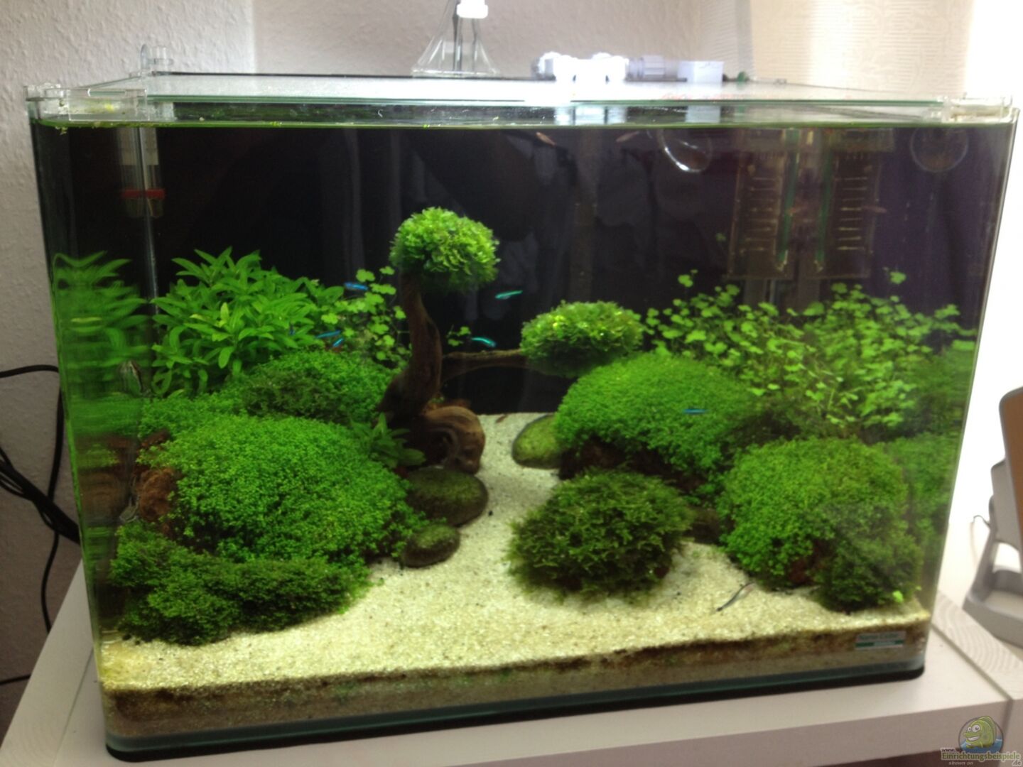 Scapers Tank von Dennerle: gebogene Ecken vorne, ein sehr schönes Format, wie ich finde :) Dazu schwarze Folie für den Hintergrund