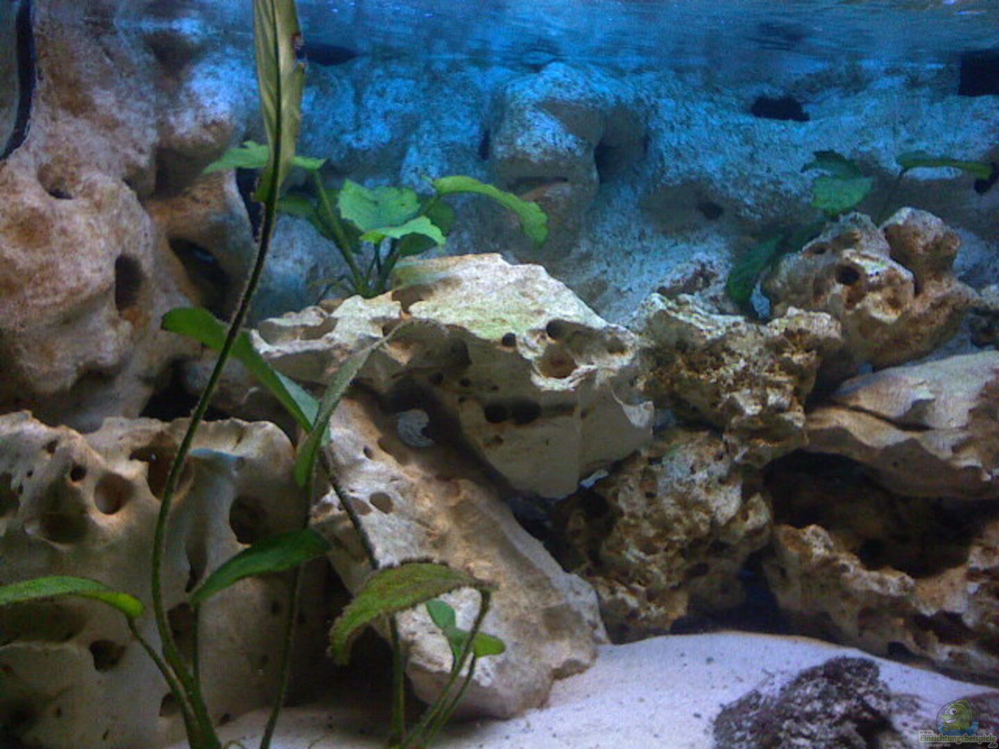 Dieses Becken besitze ich seit 2004, es wurde für mich gebaut, passend für denn Wandschrank im Flur. Von wo aus ich einen Durchbruch ins Wohnzimmer gemacht habe. Das Aquarium besteht aus 12mm Glas, der Boden aus 15mm Glas. Besonders glücklich bin ich über die Grundfläche von 100cmx80cm, was mir erlaubt trotz vieler Versteckmöglichkeiten auch viel Schwimmraum zu bieten.
