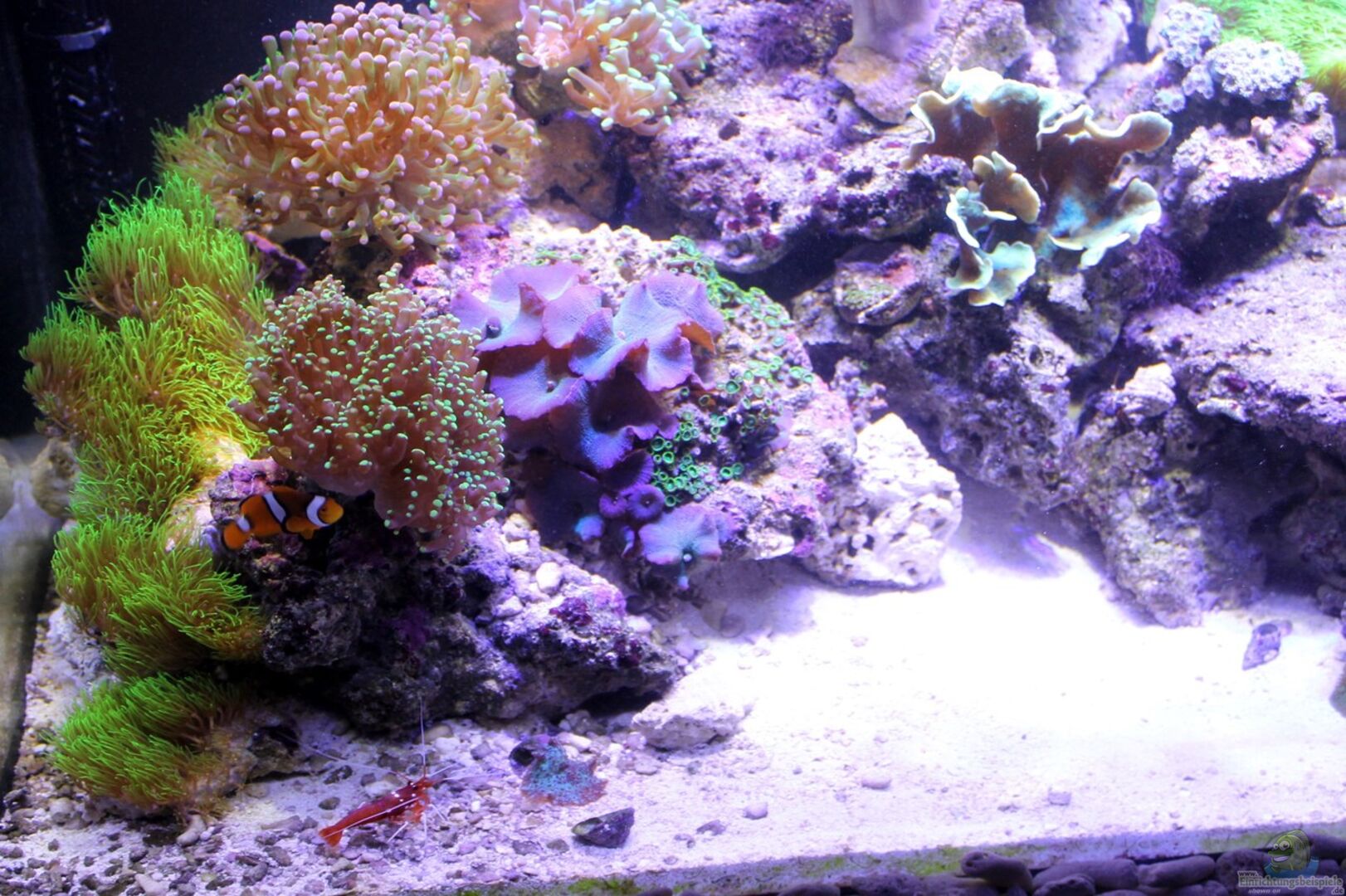 nach langen hin und her ??berlegungen, Bücher wälzen ect..., steht nun auch endlich ein Meerwasser Becken bei uns. Es wurde geplant was das Zeug hält, Becken, Technik besorgt und mit toller Unterstützung von Freunden "eingerichtet". Der Unterbau bestehend aus; einer 18mm starken, lasierten Holzplatte, unter der Holzplatte sind 6 x 11x11cm Stücke befestigt, zur besseren Gewichtsverteilung. Anschlie??end kommen die Steine, rechts und links jeweils 3 Stück. Die Steine wurden [...]