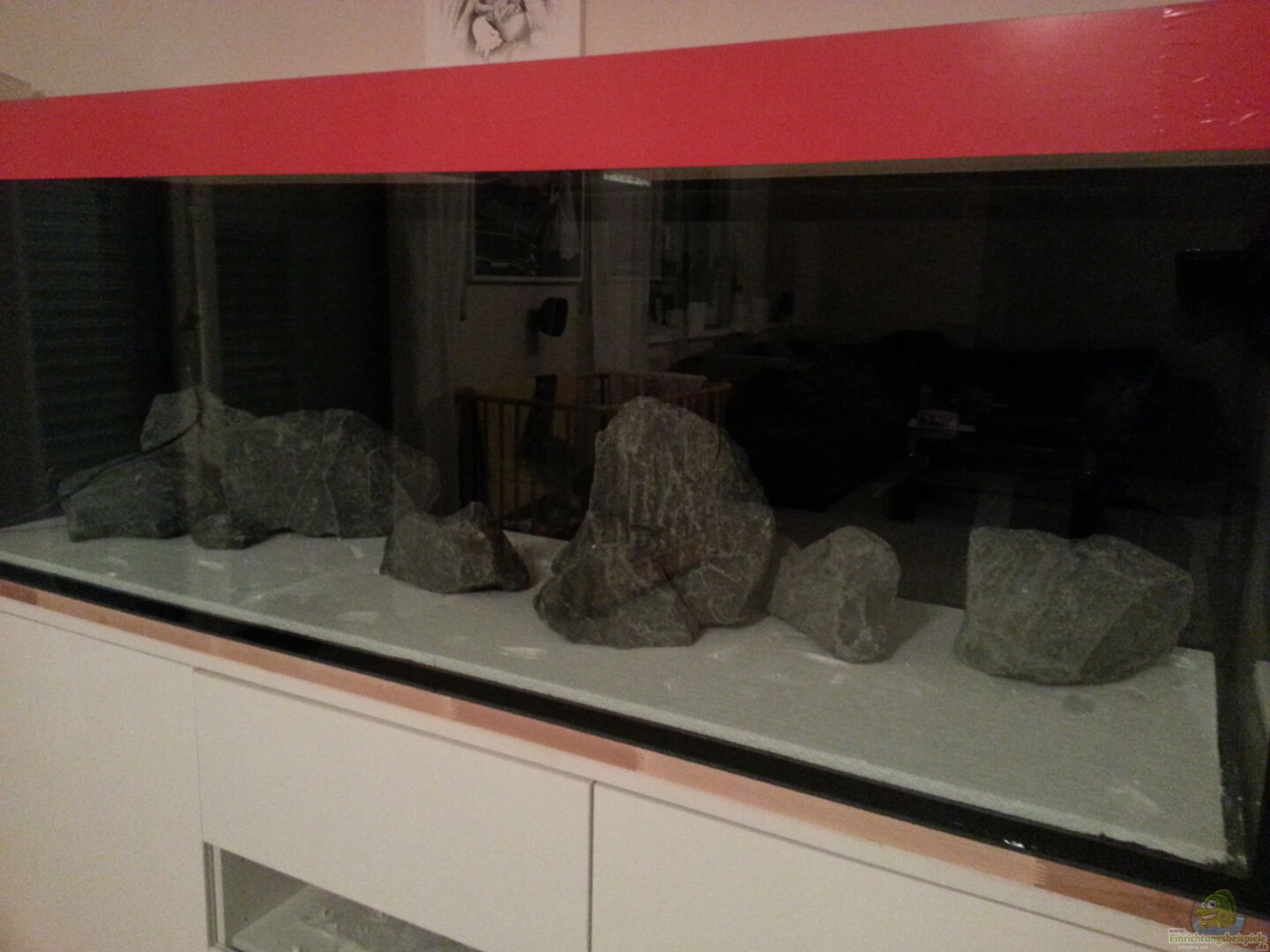 Das Aquarium ist eine Sonderanfertigung vom Aquarienbauer und besteht aus 12 mm Glas mit Innennaht und hat fünf Jahre Garantie. 180 cm lang 55 cm tief und 60 cm hoch. Die Abdeckung ist ein Eigenbau aus wei??en Hartschaumplatten. Den Schrank hat mir nen Tischler aus 20 mm Spanplatten hergestellt. Die Türen sind vom schwedischen Möbelhaus.... Ich habe drei Beton Fundamente in den Fu??boden gelassen um sicher zu gehen, dass mir der Estrich durch das hohe Gewicht nicht kaputt geht. [...]