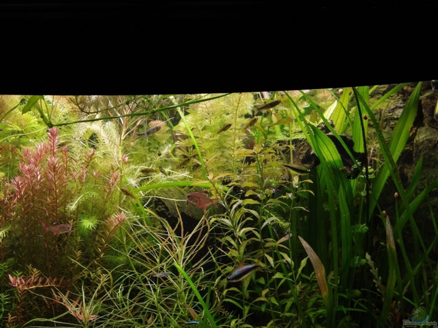 Es handelt sich um ein Trigon 190 von Juwel. Dieses Becken wurde 2003 gekauft und läuft seit dem ohne Unterbrechung durchgehend. Der Unterschrank ist noch von der vorherigen Version mit gerader Frontscheibe. Er wurde jedoch in der Höhe gekürzt und eine zweite Platte mit der Rundung des Beckens wurde aufgeschraubt so das es richtig steht. Da es damals ein Auslauf Artikel war, war er bedeutend günstiger als der neue Original Schrank.