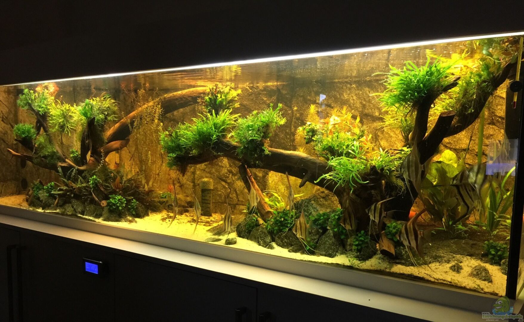 Das Becken habe ich von einem Freund bekommen, der es als Salzwasserbecken laufen lie??. Seitdem hatte ich es 8 Jahre als Malawibecken laufen. Verkleidung und Abdeckung habe ich vom Tischler machen lassen. Im Becken befindet sich unter den Steinen ein 5cm Dickes Rohr mit rein geflexten Rillen. Zwischen Becken und Stahlgestell ist eine 5cm Dicke Styropordecke.Unter dem Becken habe ich einen Ablauf 5cm breit (Becken ist in 7 Minuten leer). Eine Mischbatterie und ein Zulauf von drau??en (Gartenpumpe) [...]