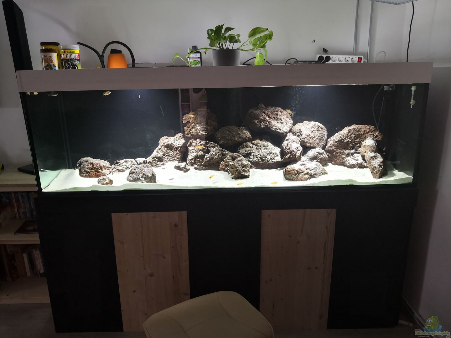 Eigenbau bis aufs Glasbecken. Unterschrank sowie Abdeckung sind selbet gefertigt. Nach Jahren mit fertigen Komplettsystemen habe ich mich dazu entschlossen bis auf Becken alles selber zu bauen. Der Unterschrank besteht aus 70mm Kantholz über Winkel verbunden. AlsVerkleidung dienen Leimholzplatten. Die Abdeckung besteht aus PVC Hartschaumplatten, silikonverklebt. Dessweiteren sind Hohlkammerplatten als Abdeckung verwendet worden. durch die gute Lichtdurchlässigkeit können die LED Fluter drauf [...]