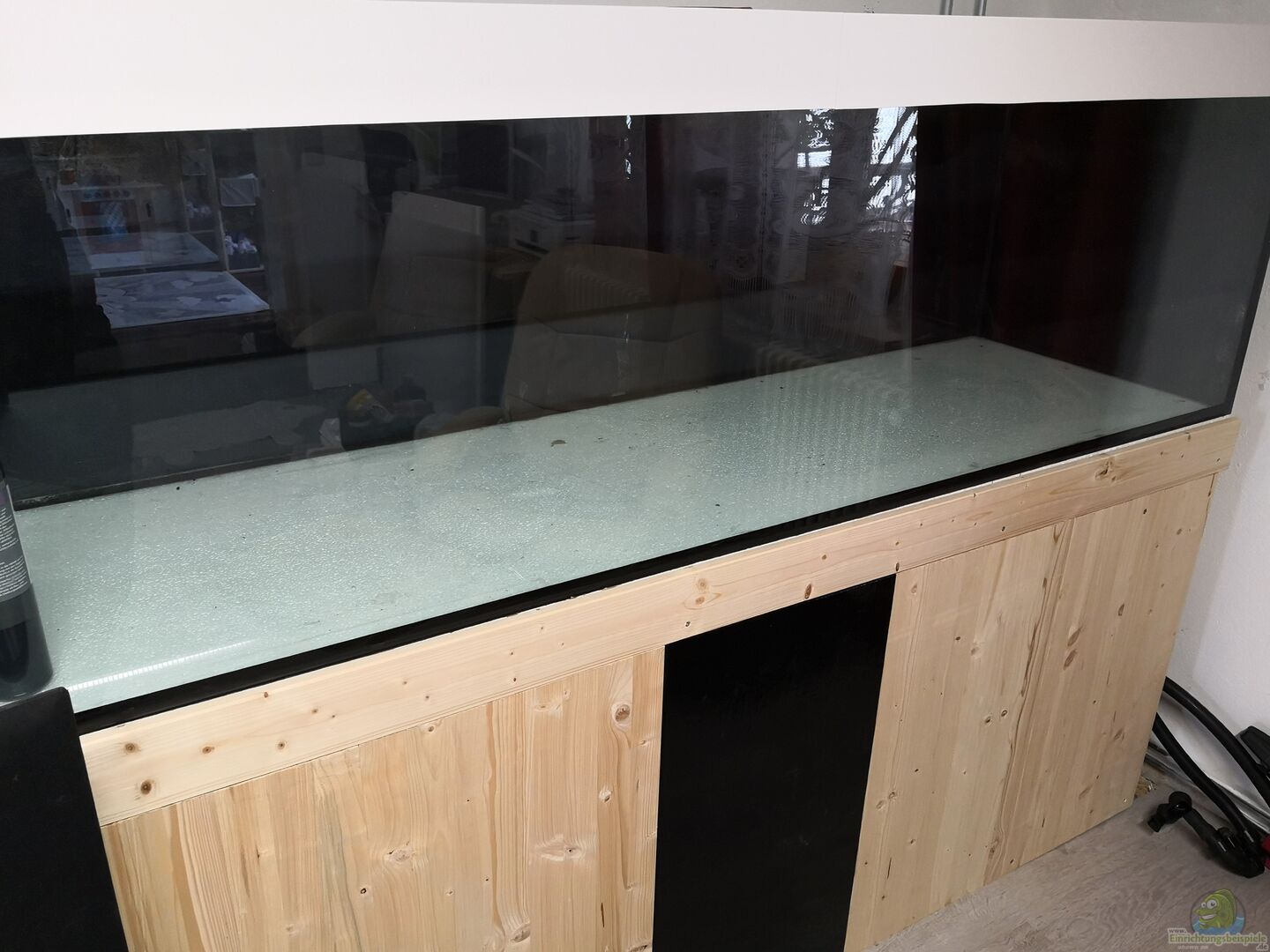 Eigenbau bis aufs Glasbecken. Unterschrank sowie Abdeckung sind selbet gefertigt. Nach Jahren mit fertigen Komplettsystemen habe ich mich dazu entschlossen bis auf Becken alles selber zu bauen. Der Unterschrank besteht aus 70mm Kantholz über Winkel verbunden. AlsVerkleidung dienen Leimholzplatten. Die Abdeckung besteht aus PVC Hartschaumplatten, silikonverklebt. Dessweiteren sind Hohlkammerplatten als Abdeckung verwendet worden. durch die gute Lichtdurchlässigkeit können die LED Fluter drauf [...]