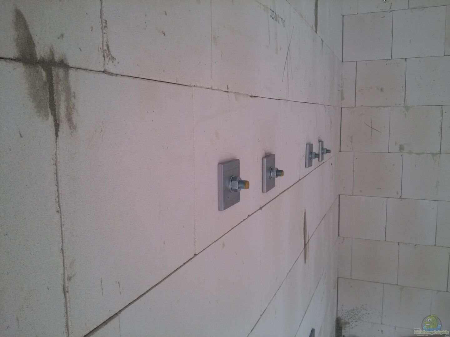 Panorama Becken, 15mm Glasstärke, sto??verklebt mit Sicherheitsnaht, ??berlaufschacht mit 2 Lochbohrungen hinten links, 60mm und 45mm für einen 50mm Ablauf und 32mm Zulauf. Bohrungen habe ich selbst durchgeführt und den ??berlaufschacht selbst eingelebt. Das Becken steht auf einem Stahluntergestell mit einer Breite von 150cm und einer Tiefe von 70cm. Das Gestell ist zur Gewichtsentlastung des doch recht dünnen Betonfu??bodens mit 6 16mm starken Gewindestangen an der Wand befestigt. Die Gewindestangen [...]