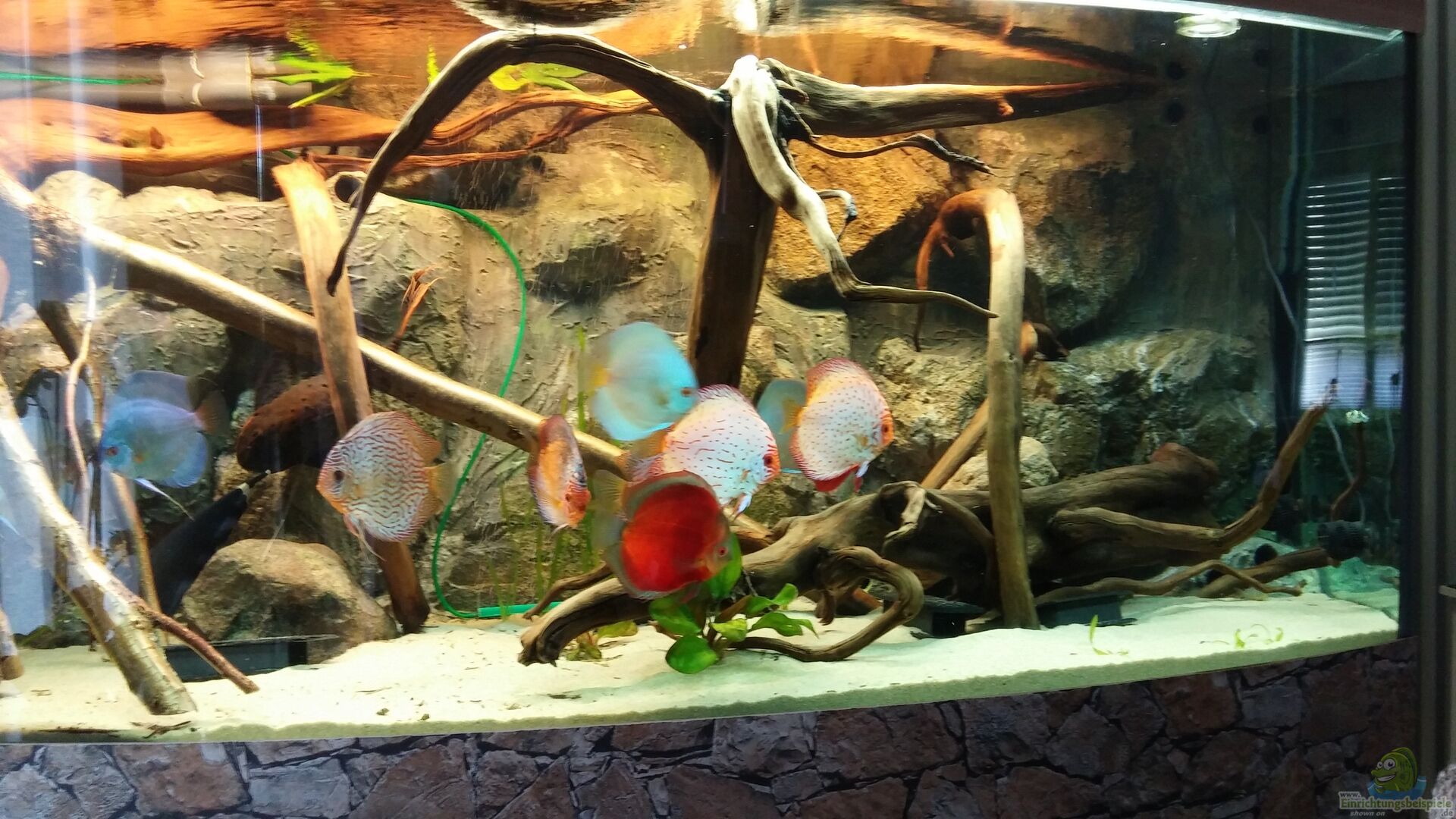 Panorama Becken, 15mm Glasstärke, sto??verklebt mit Sicherheitsnaht, ??berlaufschacht mit 2 Lochbohrungen hinten links, 60mm und 45mm für einen 50mm Ablauf und 32mm Zulauf. Bohrungen habe ich selbst durchgeführt und den ??berlaufschacht selbst eingelebt. Das Becken steht auf einem Stahluntergestell mit einer Breite von 150cm und einer Tiefe von 70cm. Das Gestell ist zur Gewichtsentlastung des doch recht dünnen Betonfu??bodens mit 6 16mm starken Gewindestangen an der Wand befestigt. Die Gewindestangen [...]