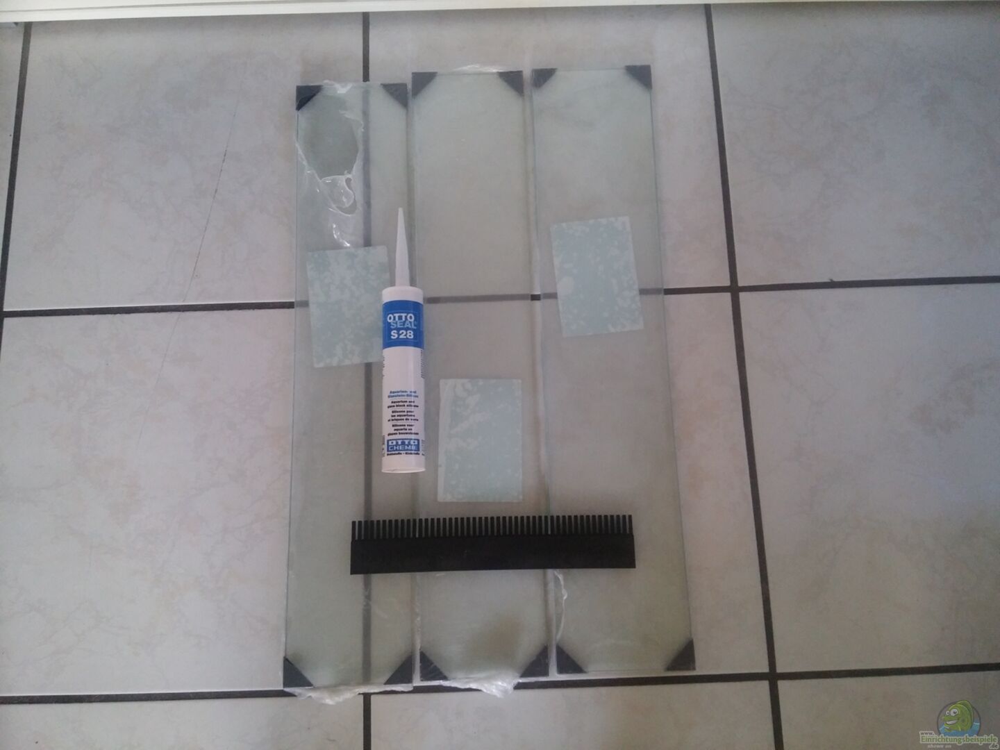Panorama Becken, 15mm Glasstärke, sto??verklebt mit Sicherheitsnaht, ??berlaufschacht mit 2 Lochbohrungen hinten links, 60mm und 45mm für einen 50mm Ablauf und 32mm Zulauf. Bohrungen habe ich selbst durchgeführt und den ??berlaufschacht selbst eingelebt. Das Becken steht auf einem Stahluntergestell mit einer Breite von 150cm und einer Tiefe von 70cm. Das Gestell ist zur Gewichtsentlastung des doch recht dünnen Betonfu??bodens mit 6 16mm starken Gewindestangen an der Wand befestigt. Die Gewindestangen [...]