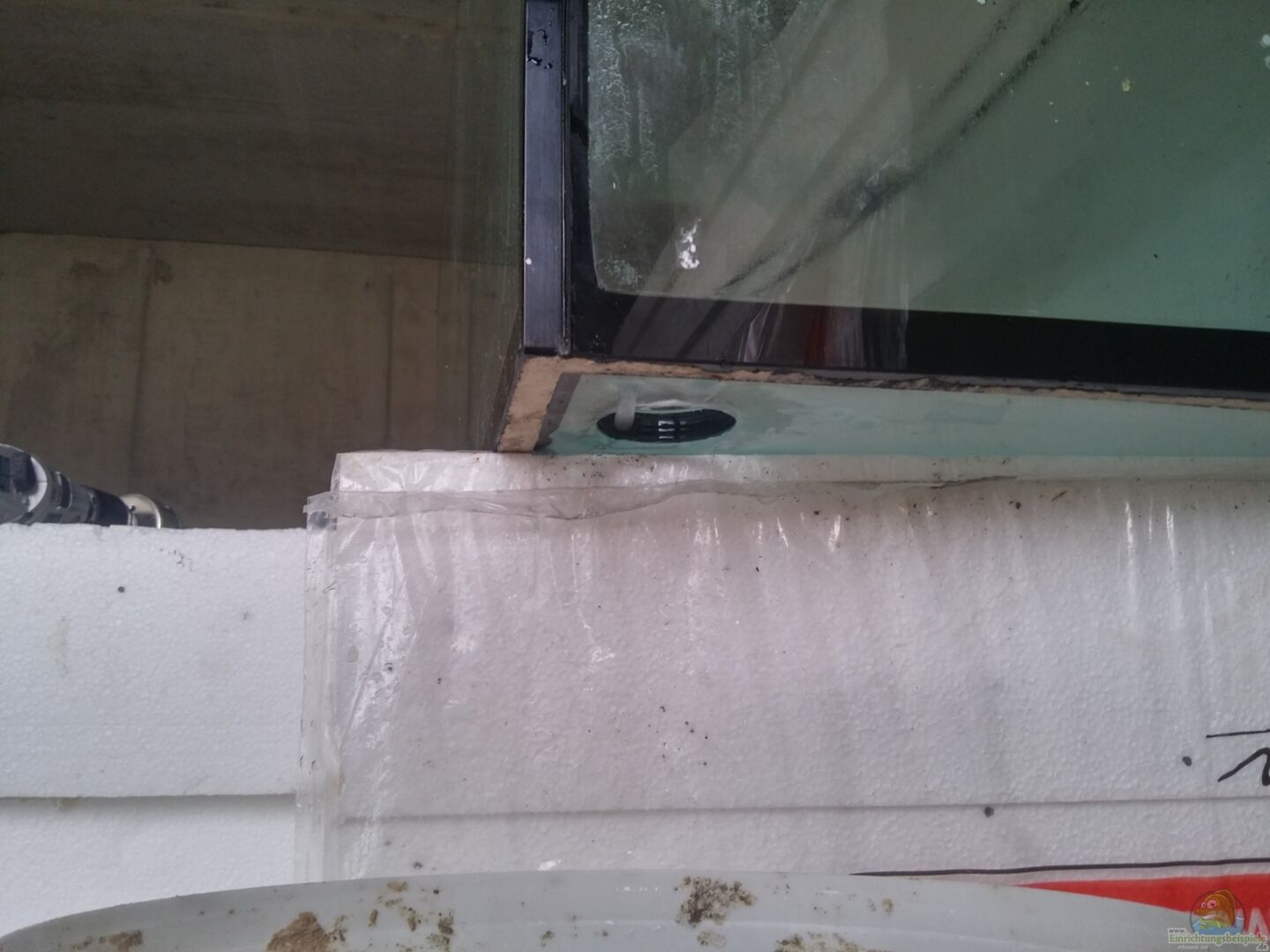 Panorama Becken, 15mm Glasstärke, sto??verklebt mit Sicherheitsnaht, ??berlaufschacht mit 2 Lochbohrungen hinten links, 60mm und 45mm für einen 50mm Ablauf und 32mm Zulauf. Bohrungen habe ich selbst durchgeführt und den ??berlaufschacht selbst eingelebt. Das Becken steht auf einem Stahluntergestell mit einer Breite von 150cm und einer Tiefe von 70cm. Das Gestell ist zur Gewichtsentlastung des doch recht dünnen Betonfu??bodens mit 6 16mm starken Gewindestangen an der Wand befestigt. Die Gewindestangen [...]