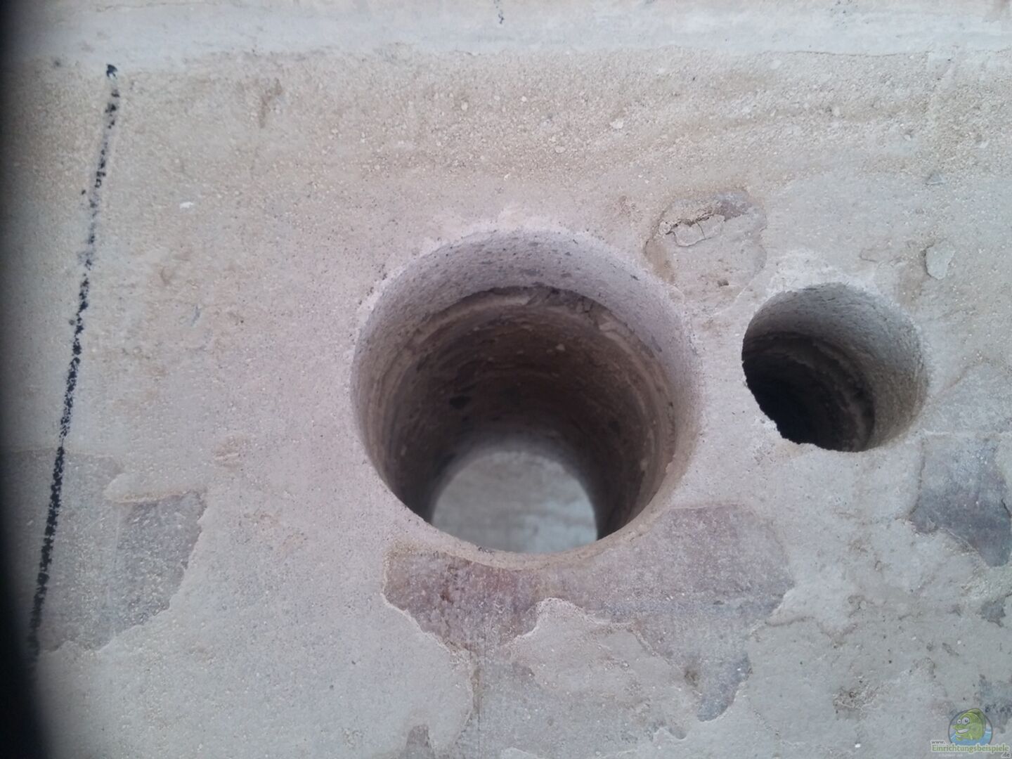 Panorama Becken, 15mm Glasstärke, sto??verklebt mit Sicherheitsnaht, ??berlaufschacht mit 2 Lochbohrungen hinten links, 60mm und 45mm für einen 50mm Ablauf und 32mm Zulauf. Bohrungen habe ich selbst durchgeführt und den ??berlaufschacht selbst eingelebt. Das Becken steht auf einem Stahluntergestell mit einer Breite von 150cm und einer Tiefe von 70cm. Das Gestell ist zur Gewichtsentlastung des doch recht dünnen Betonfu??bodens mit 6 16mm starken Gewindestangen an der Wand befestigt. Die Gewindestangen [...]