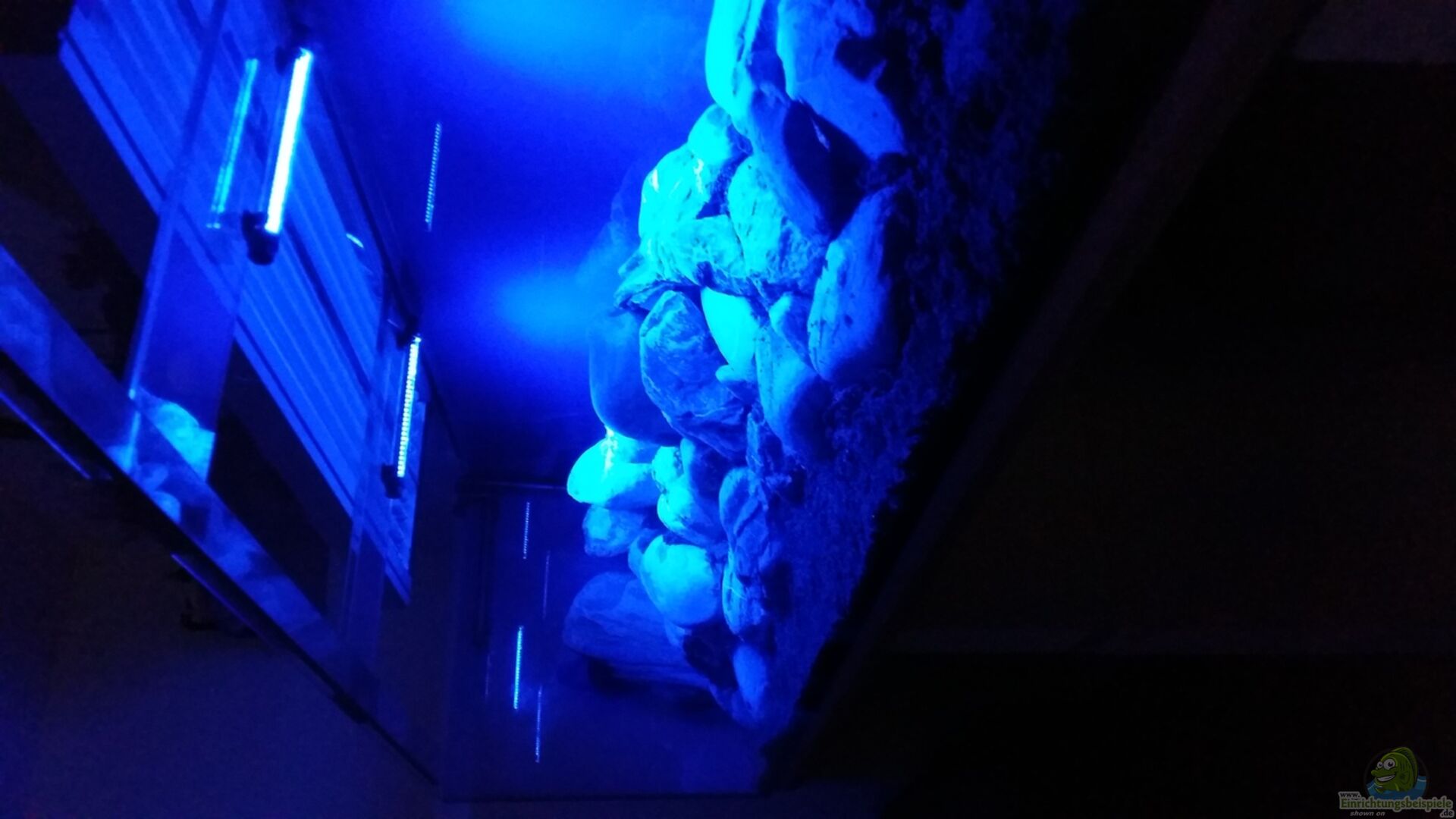 Habe das Becken links rechts und hinten mit dunkelblauer klebefolie nass verklebt... Der unter Bau besteht aus Itogsteinen... Das ganze steht auf einer 2 cm Spanplatte und einer 1 cm sagegxplatte ... zwischen aquarium und uterbau liegt eine 4cm küchebplatte und eine 2 cm hartschaumisolationsplatte...