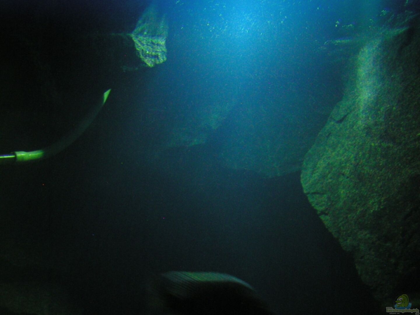 Stahlbetonbecken nur 19mm Frontscheibe. Vertiefung im Beckenboden und Vertiefung in der Rückwand somit Grabenefekt.Dadurch 200 cm tiefe nach hinten und 180 nach unten.Tolle Ansicht. Ist im Bild leider schwer festzuhalten.