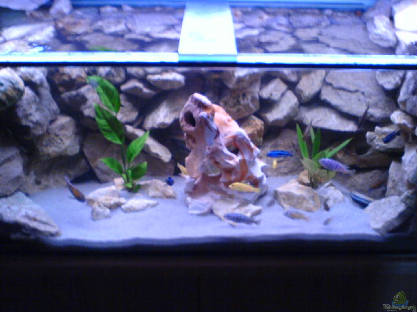 Rückwand selber gebaut. 2cm Styrudurplatten mit Aquariumsilikon an die Scheiben und den Boden geklebt.Dann die Steine aus einem Kieswerk aufgestapelt und mit Brunnenschaum ausgeschäumt. Als er trocken war zwischen den Steinen herausgekratz das sich viele Höhlen bilden.Hält echt super. An den Ecken habe ich Ansaugung Auströmer und Heizung eingebaut.Kann komplett durchschwommen werden. Unterschrank auch selbst gebaut wie man sieht.
