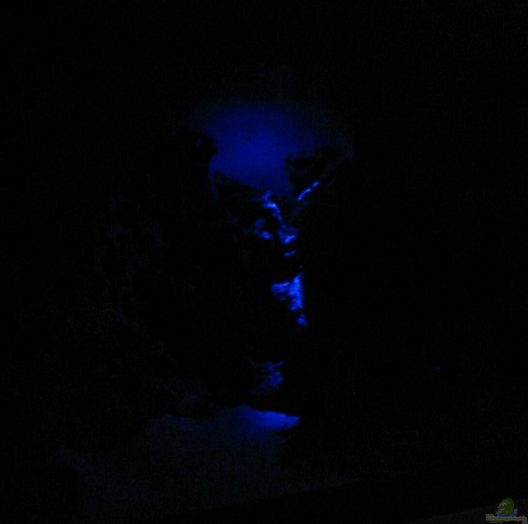 Juwel Aquariumdeckel mit Edelstahlklappen Unterschrank ist Eigenbau mit 18 mm Multiplexplatte für Korpus und 40 mm Multiplexplatte für Auflage (geölt). Seiten-und Heckscheibe mit blauer Folie beklebt; auf der linken Seite zusätzlich ein Edelstahlblech mit Ausschnitt aufgeklebt