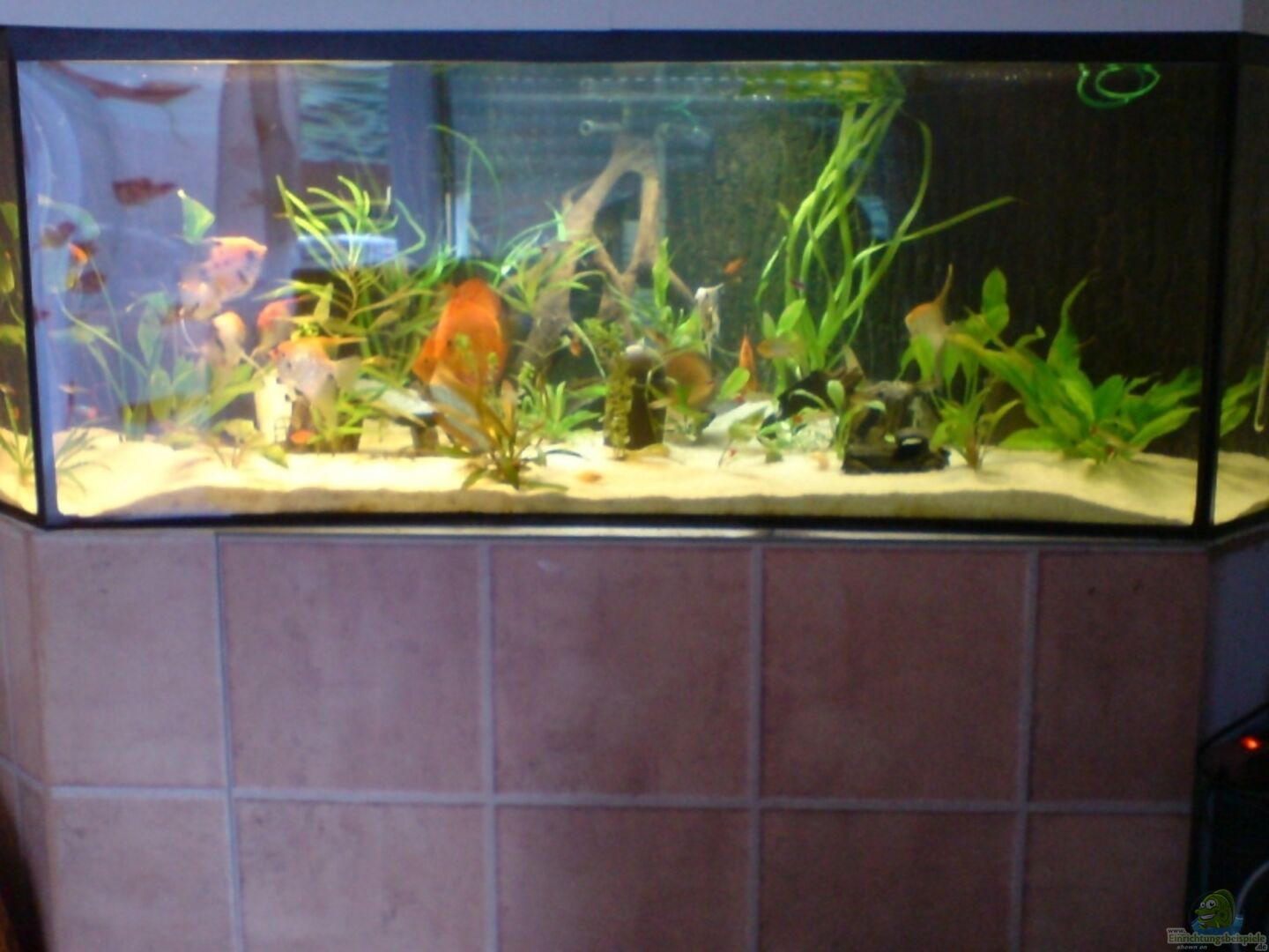 Die Ma??e vom Becken Länge 2x 1400 mm, und Höhe 600 mm. Die Seitenteile je 400 mm. Die gewölbte Frontscheibe ca. 1600 mm breit. Das Becken hat im hinteren Eck drei Bohrungen für PVC Tankverschraubung. 1 x Saugleitung DN 32. 2 x Druckleitung DN 25. Das Becken steht auf einer 10 mm starken Styropur und, 30mm Tichlerplatte. Die auf 6 Kalksand Steinen, und die auf einer 20 mm Beschichtete MDF- Platte, darunter und 10 mm Styropur.