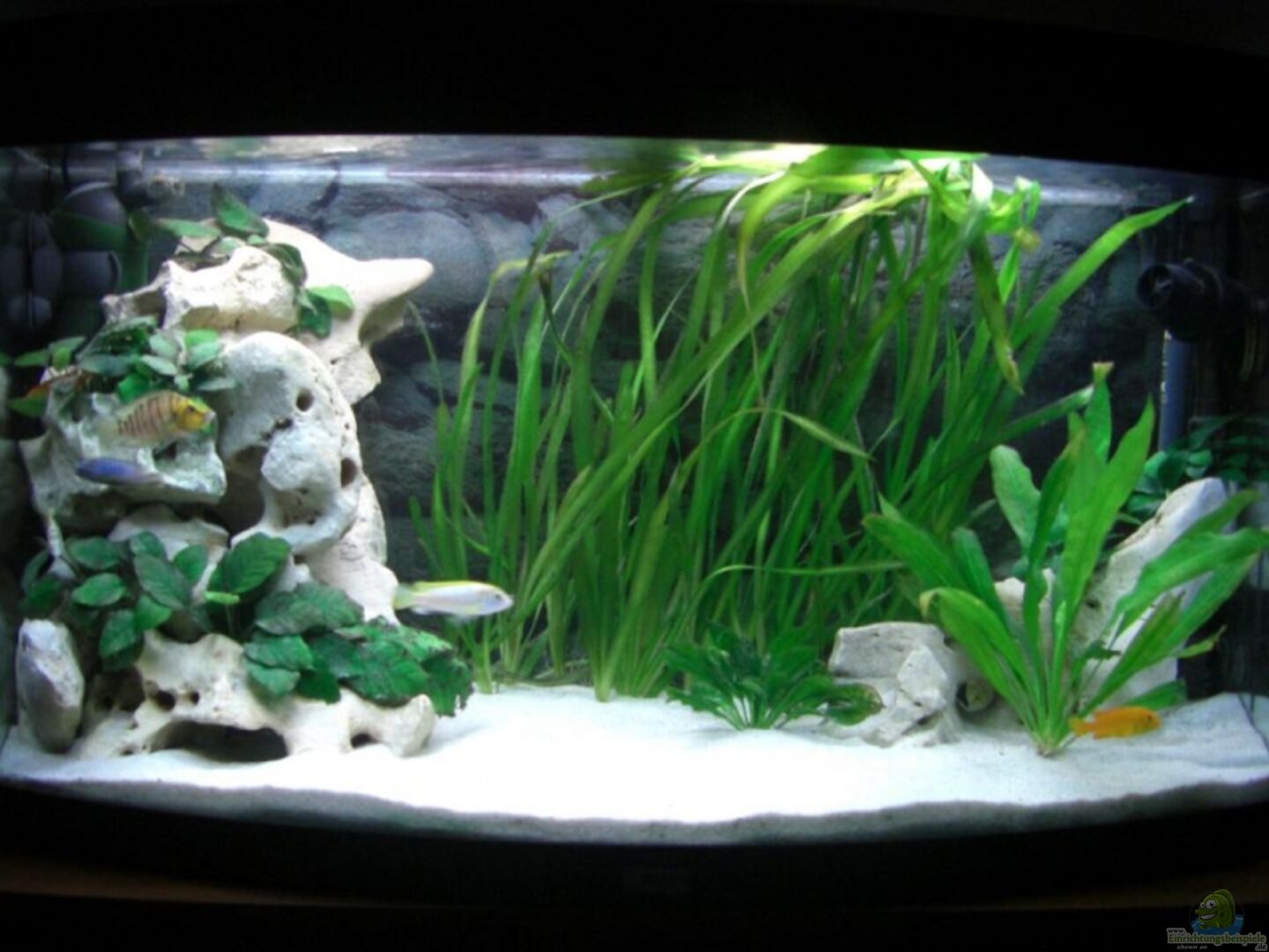 Das Becken ist Juwel Vision 180, den Innenfilter hab ich jedoch herausgewchnitten um den Fischen etwas mehr Platz zu bieten. Die Rückwand ist aussen Aufgelebt um ebenfalls keinen Schwimmraum einzunehmen. Ich habe das Becken ziemlich hoch mit Wasser aufgefüllt, durch den herausgeschnittenen Innenfilter passt auch etwas mehr Wasser rein, somit sind es ca. 200 Liter.