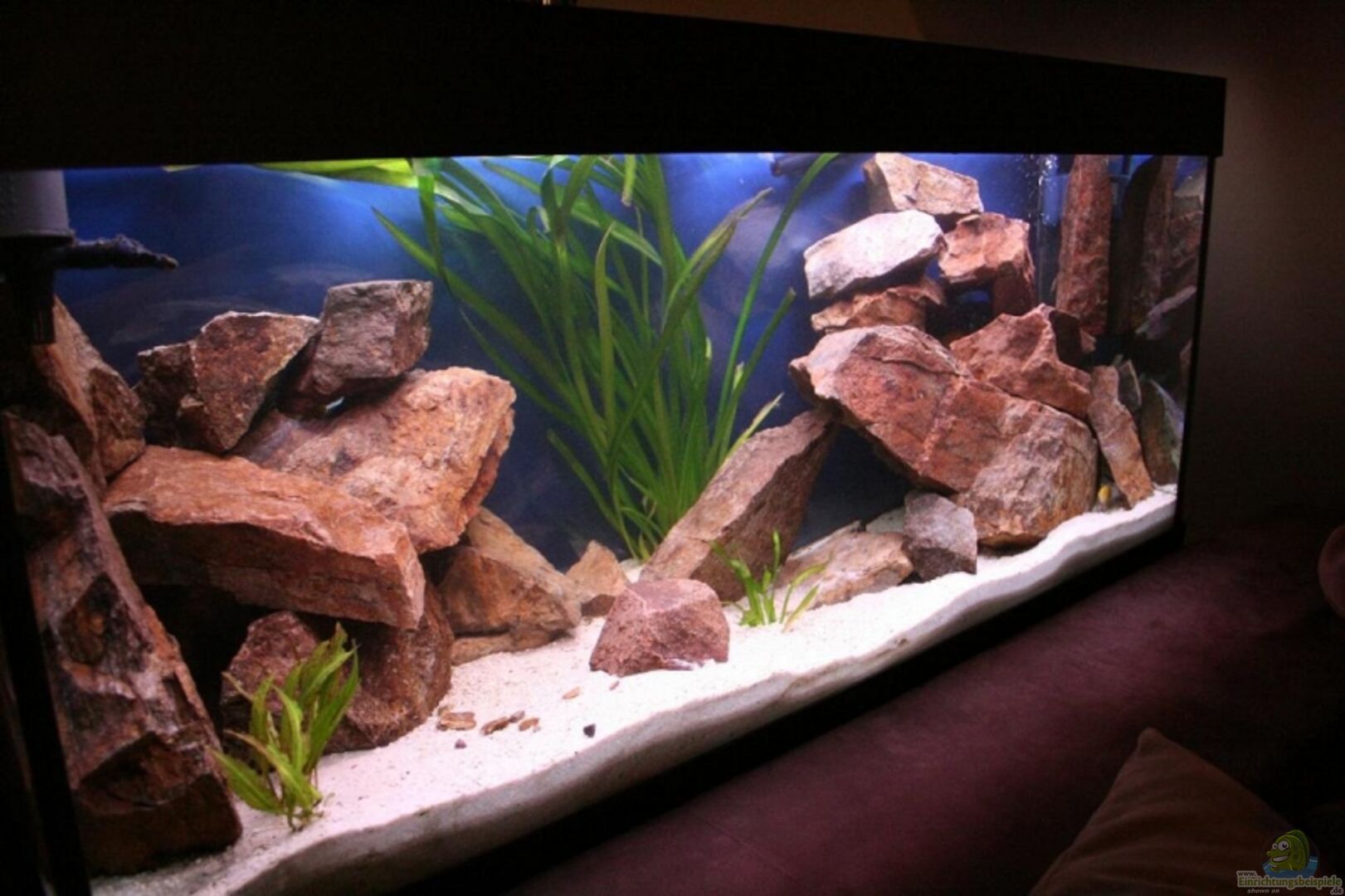 Das Becken steht auf einem ma??angefertigtem Unterschrank aus geöltem Kirschholz. Hat mir ein Hobbyschreiner gemacht. Schade nur das man ihn nicht wirklich sieht. Die Ma??e betragen 120x40x57. Durch die Höhe ist das Aquarium auf armlehnenhöhe des Sofas und wenn man sich gemütlich aufs Sofa knallt und ins Becken schaut muss man sich beherrschen um nicht einzuschlafen :-D
