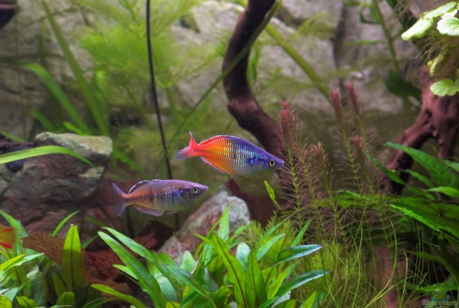 Fluval Vicenza 180, mit gebogener Frontscheibe und Bodenbohrung. Eingerichtet am 13.12.2007. Ursprünglich als Südamerikabecken mit einem Schwarm von Salmlern anstelle der Regenbogenfische geplant, haben es mir letztere aber so angetan, dass ich die Kontinentalgrenzen ignorierte... Die Wasserwerte sind zwar auf dem Papier etwas hart für das Apistogramma-Pärchen, aber bislang scheinen sich alle wohl zu fühlen. Die Bodenbohrung habe ich zu Gunsten des Eheim-Filters zugemacht. ... weitere [...]