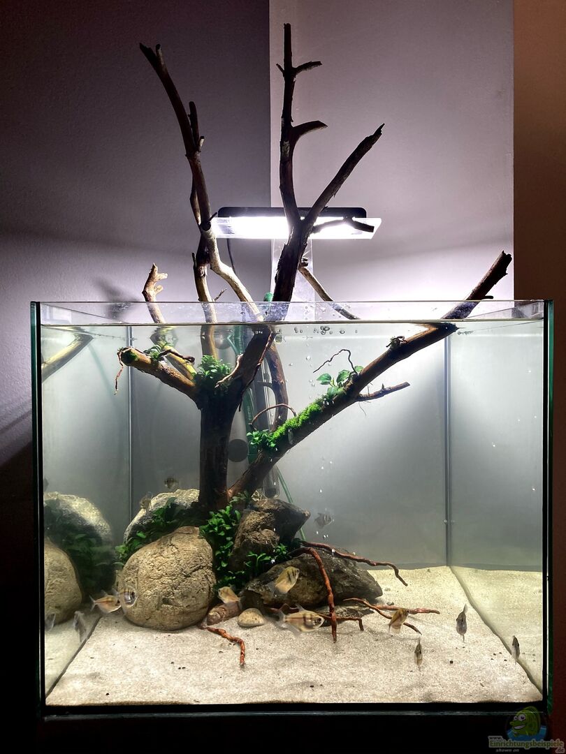 Der Unterschrank ist ein Eigenbau, da mir keiner so richtig gefiel. Ich wollte ein Aquarium welches zugleich als Möbelstück fungiert. Beton, Holz, Glas, so habe ich mir das vorgestellt. Ein Schränkchen mit den Ma??en 50x50x80 aus Beton, inklusive Türe aus Massivholz, hätte ca. 800.- Euro gekostet, dass war bzw. ist mir allerdings zu teuer. Deshalb musste ein Eingebau her. Die Internetseite www.grey-element.de gab mir Mut das Ganze selbst in Angriff zu nehmen. Das Projekt kam auf ca. 80.- Euro, [...]