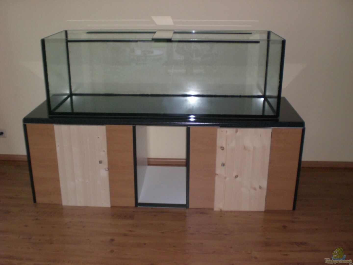 Unterschrank Marke Eigenbau, folgenderma??en: Trittschalldämmung (wie beim Laminat verlegen), darauf eine MDF Platte als Bodenplatte, darauf die vier Säulen aus Ytong Steinen, darauf eine normale Arbeitsplatte in edler schwarzer ´Granitoptik´, darauf in den Ma??en des AQ dünne Schaumstoffplatten, Aquarium. Soweit der Rohbau (siehe Bilder) Als Verkleidung haben wir 1mm dicke Platten in dunklem Ahorn auf die Ytong Steine geklebt. Die Türen sind normale Leimholzplatten die wir anschliessend [...]
