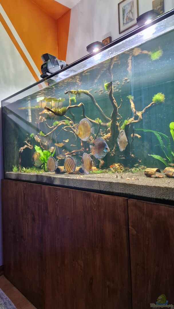 Maßgefertigtes Becken von Farao International s.r.o. - ich werde Bilder von der Produktion posten. Das Becken wurde hinten und links schwarz foliert, vorne und rechts ist es Weißglas. Die hintere Beckenwand ist 69, 5cm hoch damit die Lampen gut montiert werden können und nicht ins Wasser hängen. Unterbau aus Aluminium Stecksystem. Diskus Wildfänge, Green Tarzoo with Black Halo (Symphysodon tarzoo Pellegrin-Diskus) importiert von Amazon Exotic Import aus Manaus Rio Negro und Wildfänge [...]