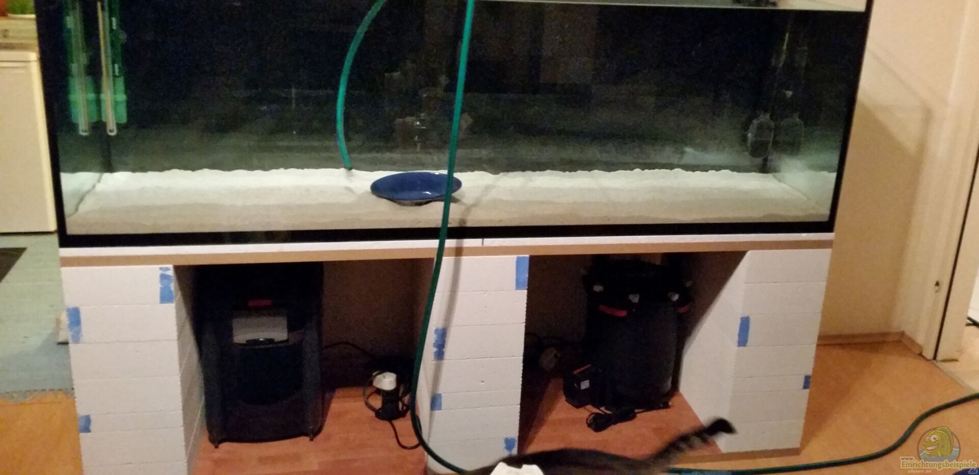 Standard-Verklebung aus 12mm Glas mit 2 Längs- und 1 Querstrebe oben, und 2 Längsstreben unten. Frontscheibe besteht aus Optiwhite-Glas. Becken hat Kies- und Oberflächenblenden vorne und an den Seiten aus Edelstahl. An den Ecken befinden sich vollflächig verklebte Winkel aus eloxiertem Alu als Kantenschutz und zur Verstärkung. Das Becken hat somit quasi einen Metallrahmen-look... Als Blende für den Leuchtbalken dient ein angefertigter Winkel aus Edelstahl (gibt es nicht mehr, der Feuchtraumbalken [...]