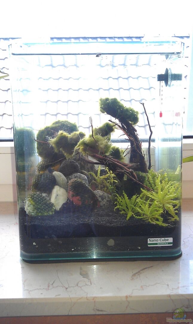 Es handelt sich um den Dennerle Nano Cube 10 L. Das Becken steht in der Fensterbank und soll ohne Technik laufen, es ist ein Experiment und ich bin mal gespannt wie es klappt. ***gescheitert***