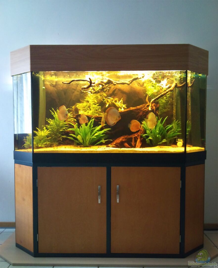 Wulstverklebtes Panorama Becken, Sonderanfertigung aus 12mm Float-Glas, selbst gefertigter Unterschrank aus Stahlrohr mit Holz verkleidet, selbsgebaute Abdeckung aus Alu- Profil mit PVC platten verkleidet, das Becken läuft seit 26.05.10