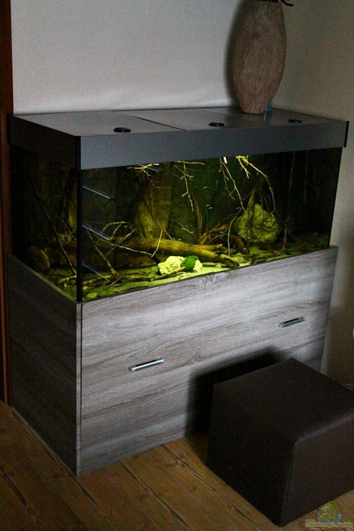 Das Aquarium: Bei dem Aquarium handelt es sich um ein Sto??verklebtes 120x50x50 Becken mit 10mm Glas von Brillant Aquarien, es ist mit einer Querstreben und zwei Längsstrebe versehen. Die Abdeckung: Die Abdeckung stammt von Aquariumabdeckungen Runge und wurde im Dekor "Metallic" gefretigt. Sie verfügt über 3 Klappen sowie links und rechts über jeweils 2 ??ffnungen, welche als Kabel und Schlauchdurchführungen dienen. Der Unterschrank: Der Unterschrank wurde aus 2 Küchenarbeitsplatten [...]