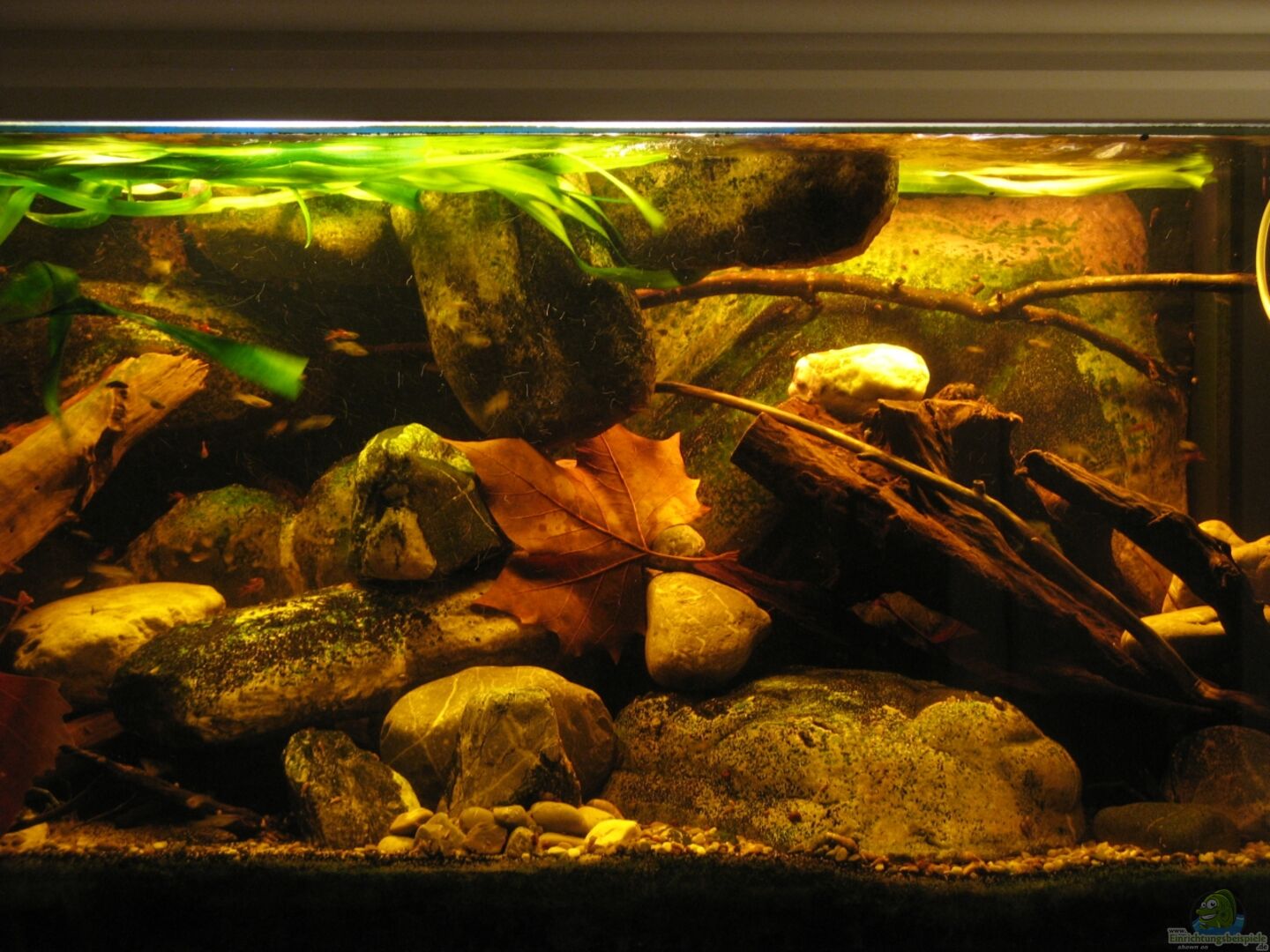 Das Becken läuft seit Juli 2006, das aktuelle Layout allerdings erst seit ca. 1, 5 Jahren Beckendaten: Standardbecken, Floatglas, stossverklebt mit schwarzem Silikon. Unterbau aus Y-Tong Steinen. Als Auflage eine 27 mm Spanplatte. Darauf liegt als Druckausgleich eine passend zugeschnittene Campingmatte. Das ganze Gebilde wurde anschlie??end verkleidet mit Sperrholz Pappel und mit wei??er Rauhfasertapete tapeziert. Auf der linken Seite des Beckens steht eine Säule aus Spanplatten, die ebenfalls [...]