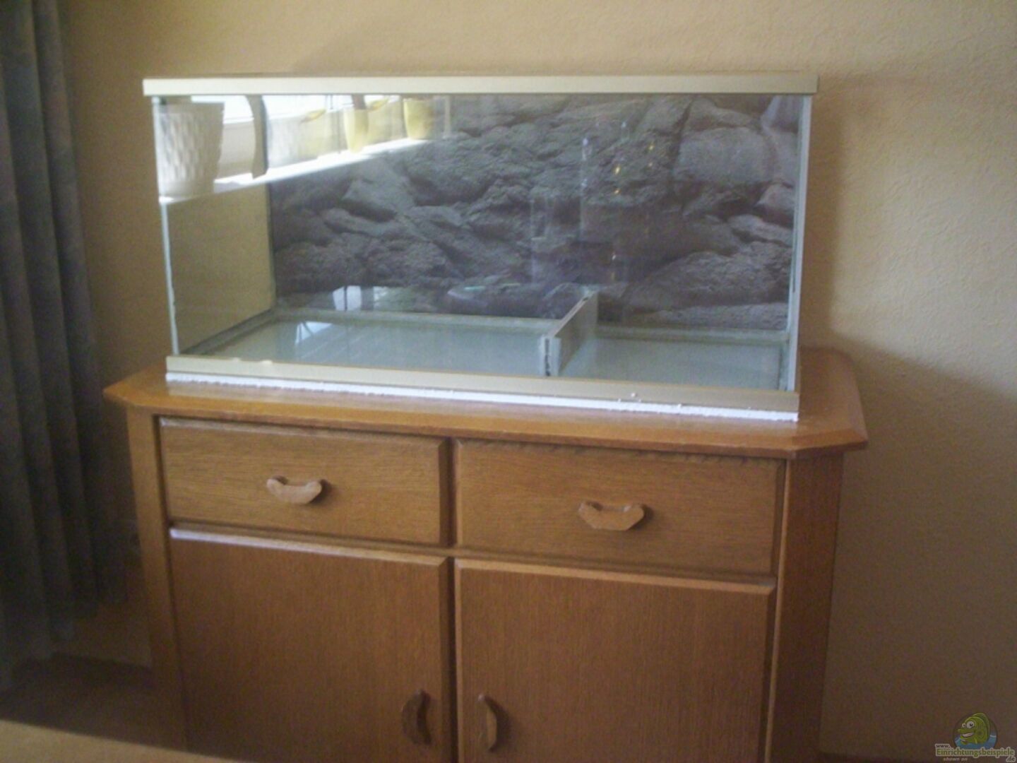 Becken ist schon eine Rarität hat oben und unten einen Eloxierten Alurahmen . Sto??verklebt. Zum Ausgleich von Unebenheiten dünne Styroporplatte unter dem Becken, zur Schonung der Bodenscheibe Styroporplatte unter den Steinen. Abtrennung eingeklebt für Uferbereich. ----