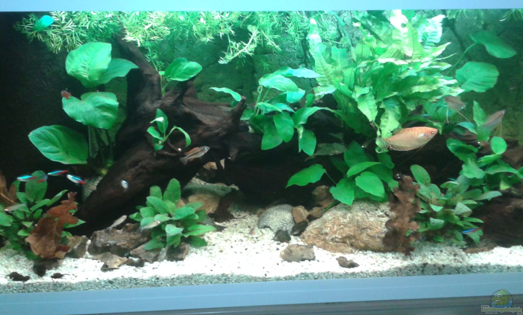 Dieses 200l Aquarium läuft jetzt gut 14 Tagen. Verklebte BacktoNature Rückwand. Es wurden 2 passende Teile zusammen geschnitten und später mit Aquariumilikon verklebt.