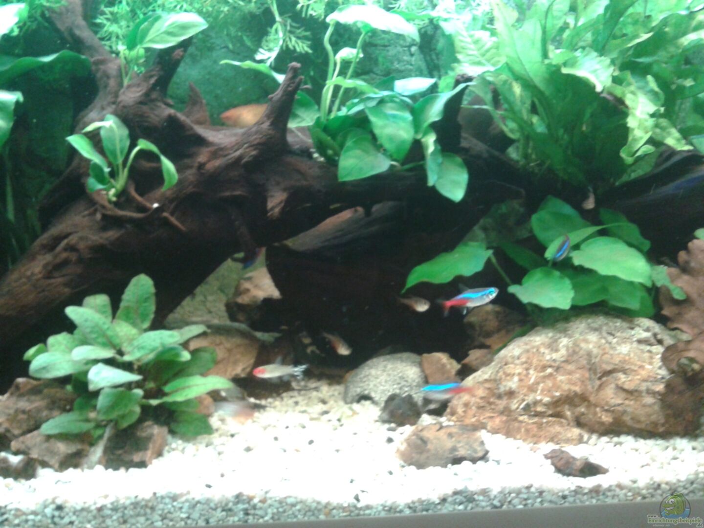 Dieses 200l Aquarium läuft jetzt gut 14 Tagen. Verklebte BacktoNature Rückwand. Es wurden 2 passende Teile zusammen geschnitten und später mit Aquariumilikon verklebt.
