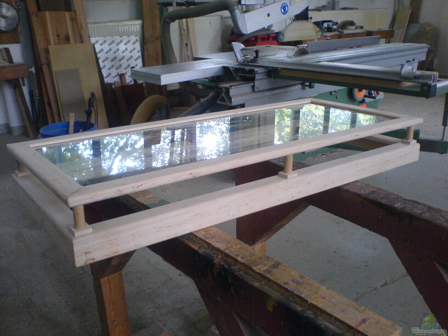 Die Rückwand wurde aus Styrodur erstellt. Hierbei dienten eine 2cm Platte als Hintergrund. Darauf wurden verschiedene geschnitzte/gebrochene Steinelemente aufgebracht. Diese wurden mit Bauschaum aus dem Baumarkt verklebt. Da dieser Kleber beim Aushärten stark quillt, wurden die einzelnen Elemente mittels Schrauben vorübergehend miteinander verbunden. Nun folgten 2 Schichten Fliesenkleber, dünn aufgetragen mit einem Pinsel. Nach 2 Tagen Aushärten wurde das ganze mit einer hellgrauen Abtönfarbe [...]