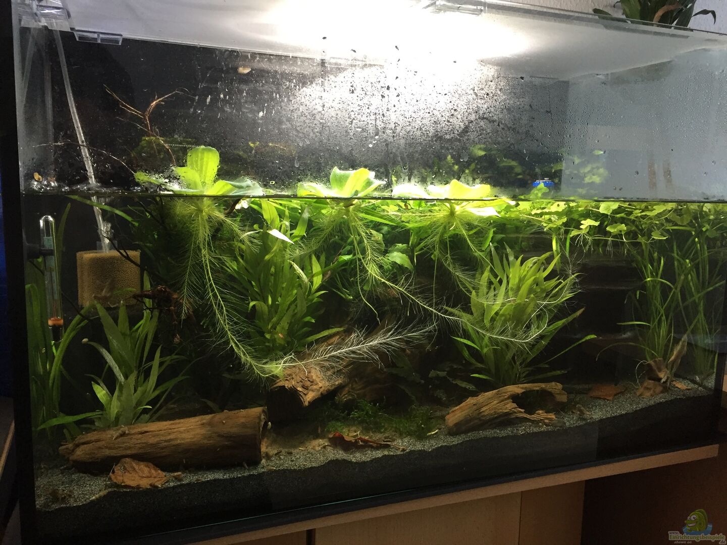 Es handelt sich um ein Standardaquarium mit den Ma??en 80x35x50 cm. Die Rückwand ist mit einer schwarzen Folie beklebt. Abgedeckt ist das Aquarium mit einer Plexiglasscheibe.