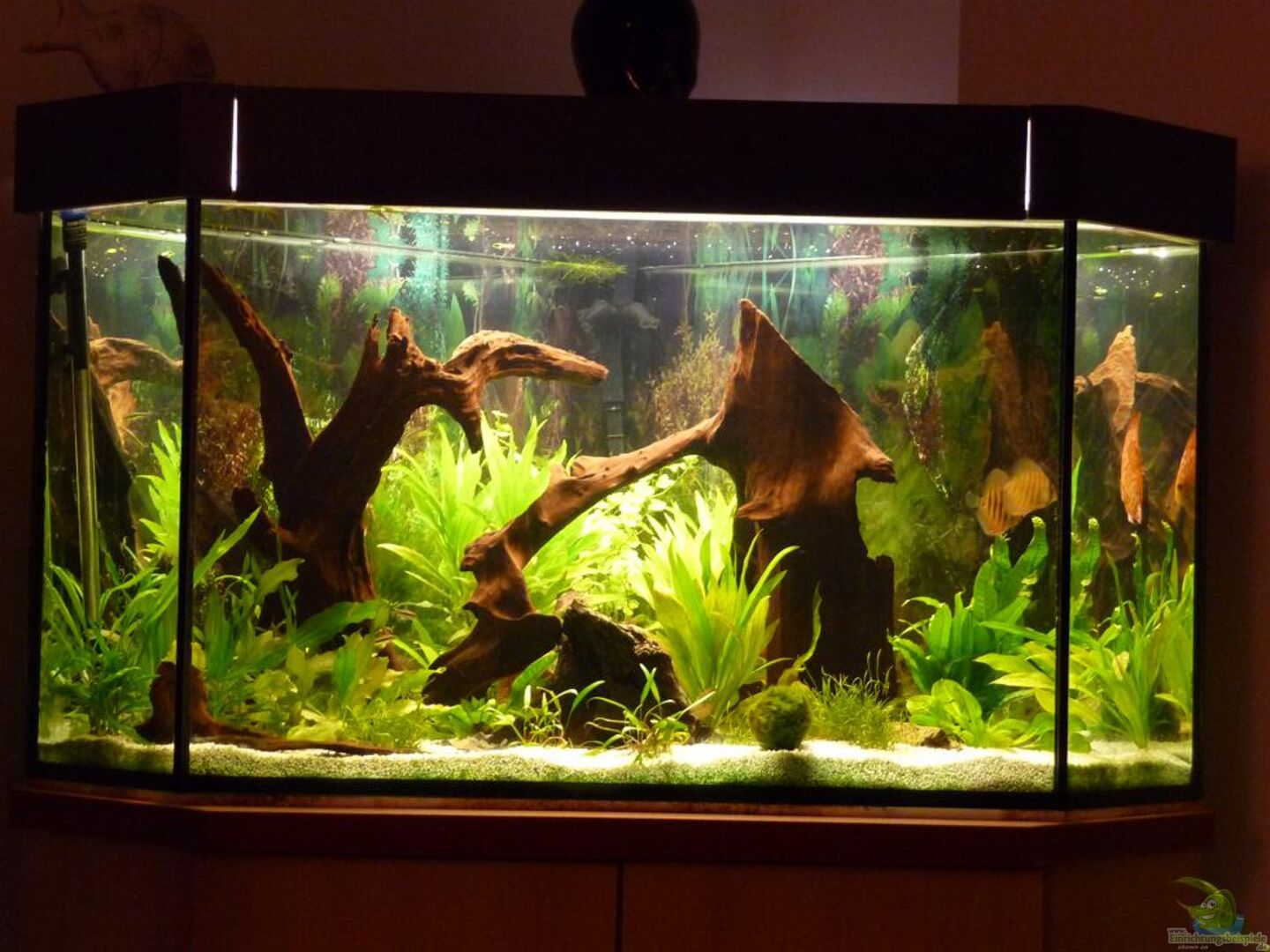 Das Becken ist ein Eigenbau mit sehr schöner Tiefe (ca. 78cm bis zur hintersten Ecke) und auch etwas mehr Höhe (65cm) das ich 1999 von privat erstanden habe. Von 1999-2005 hatte ich es oben offen gelassen und mit einem Halogenstrahler beleuchtet damit die Pflanzen herauswachsen konnten, was Sie auch getan haben. Irgendwann hat mich dann aber die hohe Verdunstungsmenge von ca 10 L am Tag genervt und ich habe eine Plexiglasscheibe aufgebracht (musste leider alle Pflanzen stutzen). Nach [...]